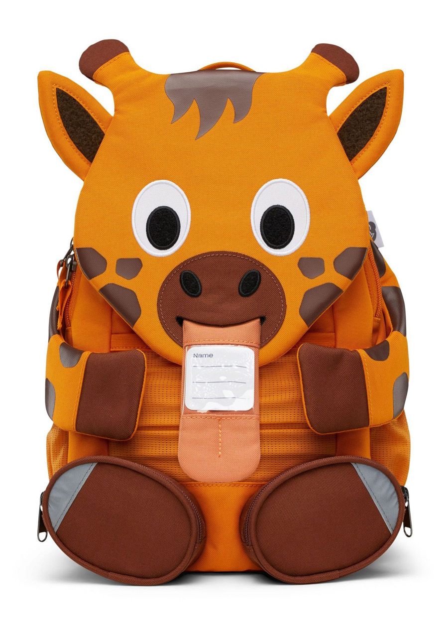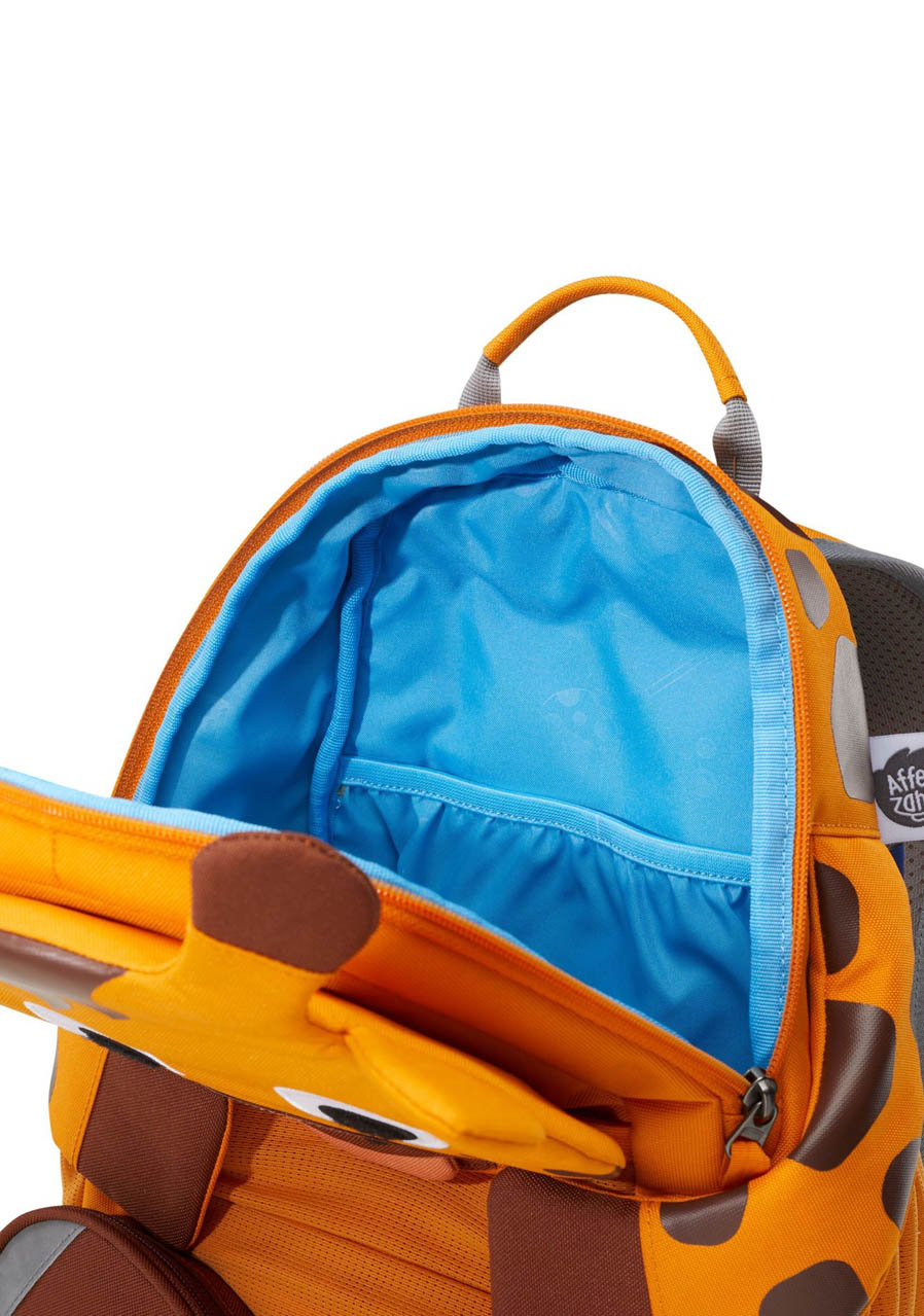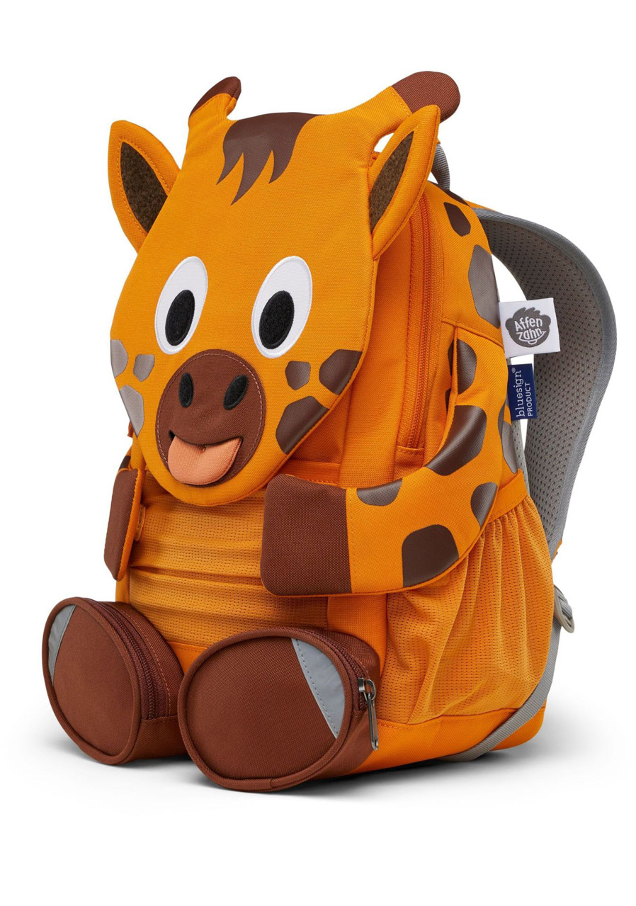 Batoh Affenzahn v tvare žirafy v žiarivom oranžovom prevedení rozžiari každý detský deň. Vďaka hravému dizajnu sa stane obľúbeným spoločníkom do škôlky aj na rodinné výpravy. Batoh je ľahký, pohodlný a ergonomicky prispôsobený detskému chrbtu. Nastaviteľné ramenné popruhy aj hrudný pás zaistí, že batoh pevne drží na svojom mieste. Praktické vrecká a ľahko ovládateľné zapínanie podporujú samostatnosť detí a učenie hrou. Navyše je vyrobený z recyklovaných materiálov, takže šetrí životné prostredie.