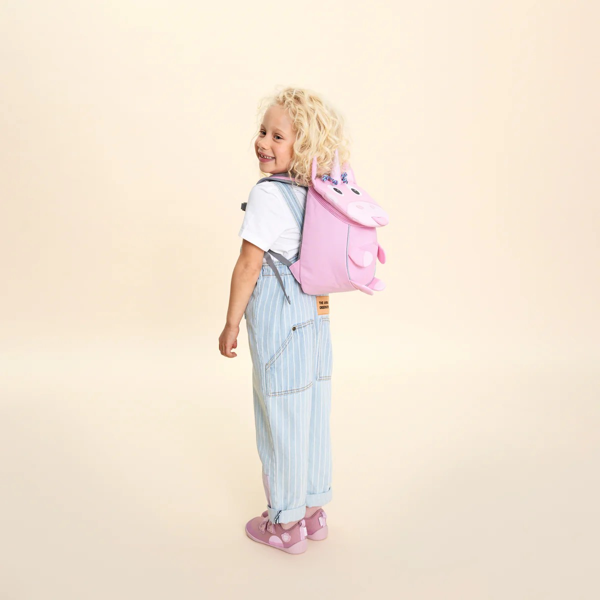 Batôžtek má nastaviteľné ramenné popruhy s polstrovaním, hrudný popruh pre lepšiu stabilitu a reflexné prvky na zvýšenie bezpečnosti. Mäkký materiál je príjemný na dotyk a ľahko sa udržuje. Vďaka ergonomickému tvaru sa batôžtek pohodlne nosí a neobmedzuje deti v pohybe. Praktické vrecká umožňujú ľahké usporiadanie vecí a jazýček, ktorý je možné vytiahnuť, poslúži ako priestor pre menovku dieťaťa.