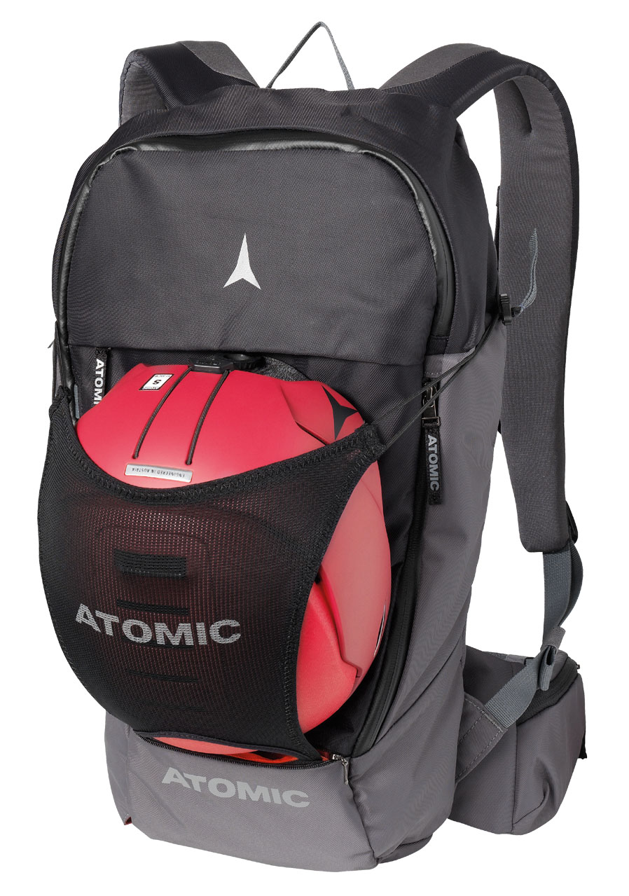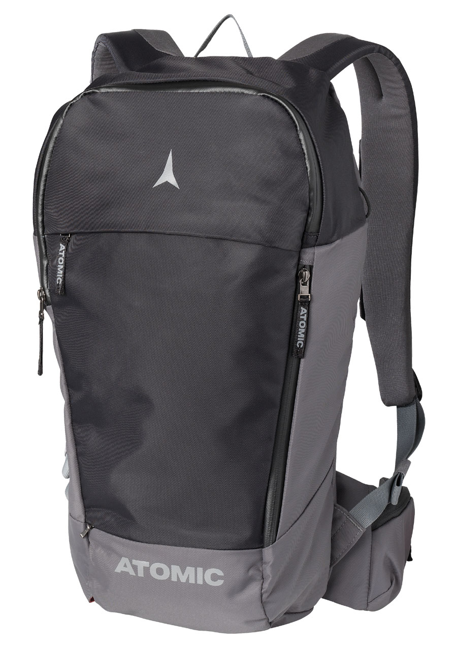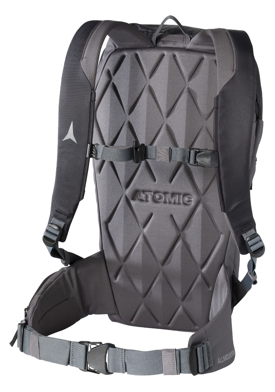 Batoh Atomic Allmountain 18 čierny / sivý Batoh špeciálne navrhnutý pre lyžiarov, vyznačuje sa tenkým tvarom ktorý neprekáža. Zadný panel je z EVA peny, nájdeme tu hlavné oddelenie i bezpečnostné oddelenie so sondou a rukávom pre lopatku. Batoh má horné držadlo, hrudný opasok s píšťalkou, nastaviteľný a polstrovaný pás na bokoch s kapsičkou na doplnky, sieťku na helmu a je kompatibilný s hydratačným systémom.