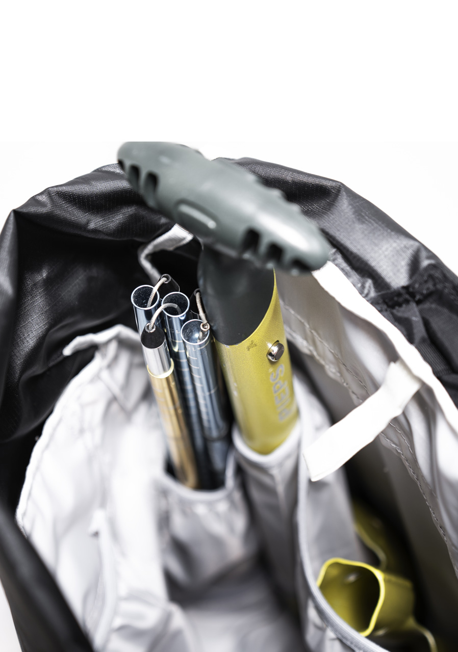Samostatné lavínové vrecko pre rýchly prístup k výbave