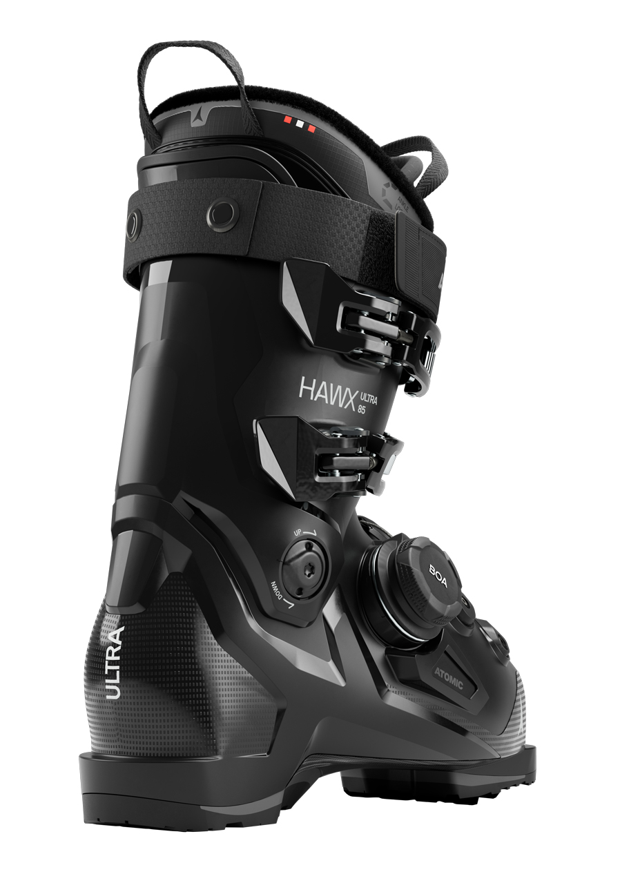 Dámske zjazdové topánky Atomic HAWX ULTRA 85 BOA W sú ľahké, pohodlné a presné topánky určené pre športovo ladené rekreačné a pokročilé lyžiarky. Rad Ultra sa vyznačuje užším kopytom so šírkou 98 mm, čo poskytuje skvelý prenos síl a pevné usadenie chodidla. Inovatívny systém BOA® Fit System umožňuje rovnomerné a precízne dotiahnutie v oblasti priehlavku, zatiaľ čo 40 mm Power Strap a dve pracky zaisťujú pevnú fixáciu nohy. Konštrukcia Prolite s vystuženými zónami znižuje hmotnosť bez toho, aby bola ohrozená stabilita. Vnútorná topánočka 3D Silver W s technológiou 3M™ Thinsulate™ udržuje nohy v teple a zároveň sa dobre prispôsobuje ženskej anatómii. Flex index 85 ponúka ideálnu rovnováhu medzi komfortom a ovládateľnosťou na celodenné lyžovanie.