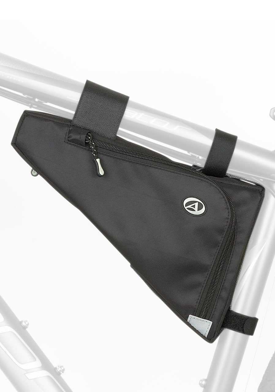 Hlavné prednosti: 2 samostatné vrecká na zips pre lepšie usporiadanie Jednoduché uchytenie pomocou suchých zipsov Odolný materiál s vodoodpudivou úpravou Reflexné prvky pre vyššiu bezpečnosť Univerzálny čierny dizajn vhodný pre väčšinu rámov