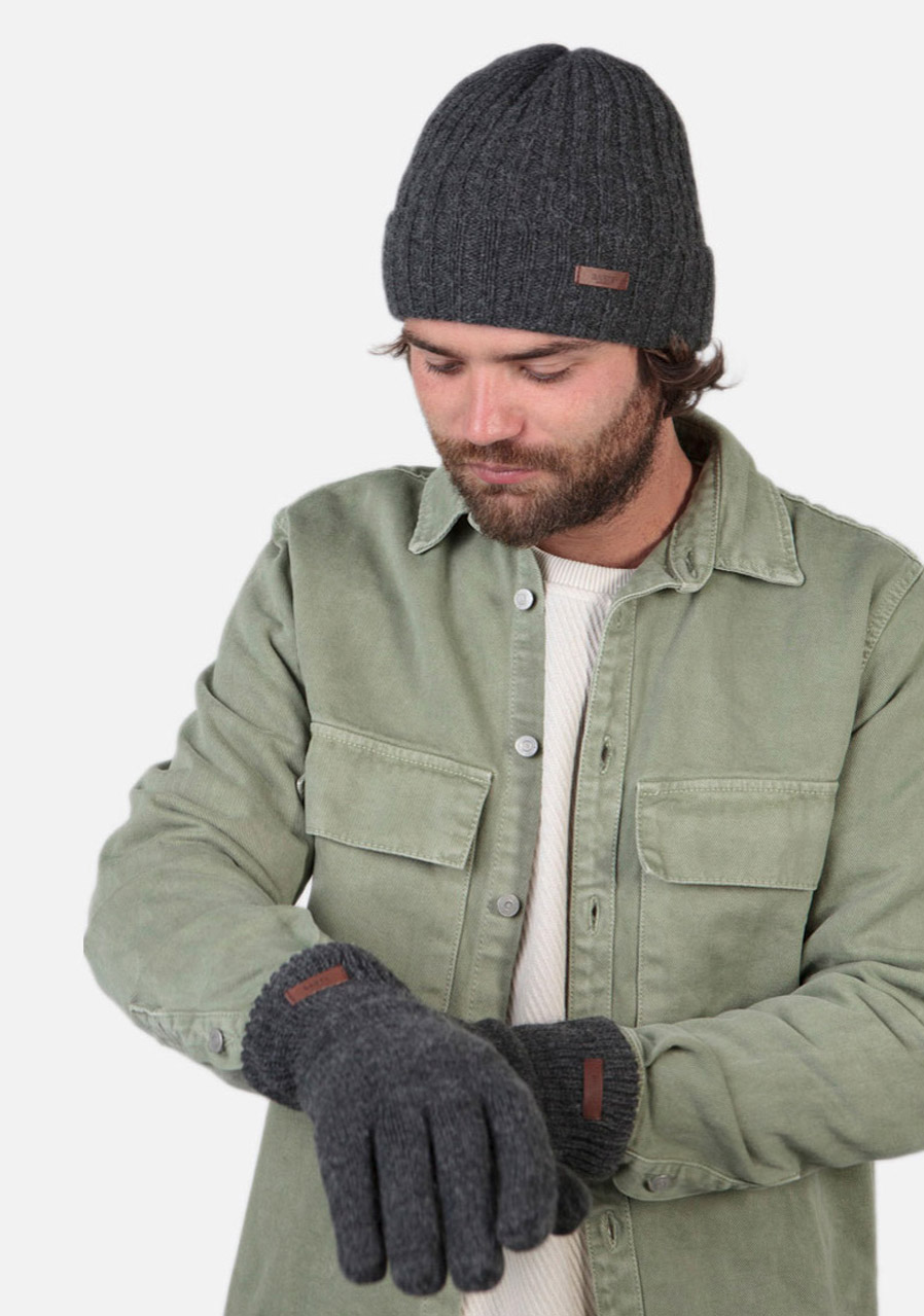 Pánska čiapka Barts Haakon Turnup v tmavo šedom odtieni Charcoal je ideálnym doplnkom pre zimné dni. Klasický rebrovaný úplet so širokým lemom zaisťuje perfektné prispôsobenie a nadčasový vzhľad. Mäkký, hrejivý materiál z akrylu poskytuje výborný tepelný komfort a zároveň je príjemný na dotyk aj pri dlhodobom nosení. Jednoduchý dizajn doplnený o kožené logo Barts pôsobí elegantne a ľahko sa kombinuje s akýmkoľvek outfitom.
