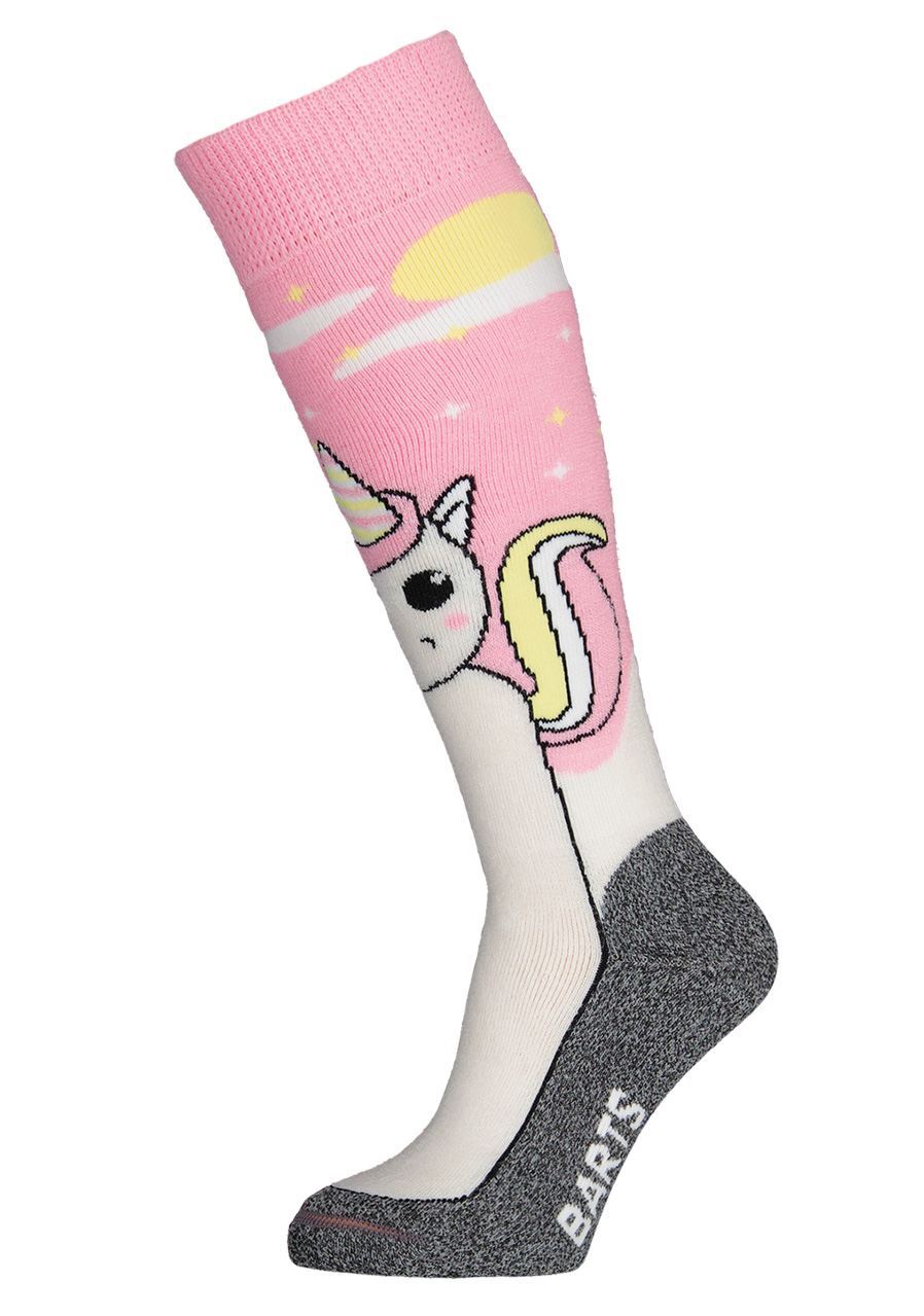 Detské lyžiarske podkolienky Barts Skisock Unicorn Kids v hravom ružovom odtieni Pink potešia každú malú lyžiarku svojim veselým dizajnom s motívom jednorožca a výborným komfortom pri nosení. Vyrobené z mäkkej zmesi s vysokým podielom bavlny poskytujú skvelú hrejivosť, priedušnosť a mäkký pocit na pokožke. Zosilnené časti na päte, špičke a holeni zvyšujú odolnosť aj pohodlie v lyžiarskych topánkach, zatiaľ čo elastický lem zaisťuje, že ponožky perfektne držia po celý deň.