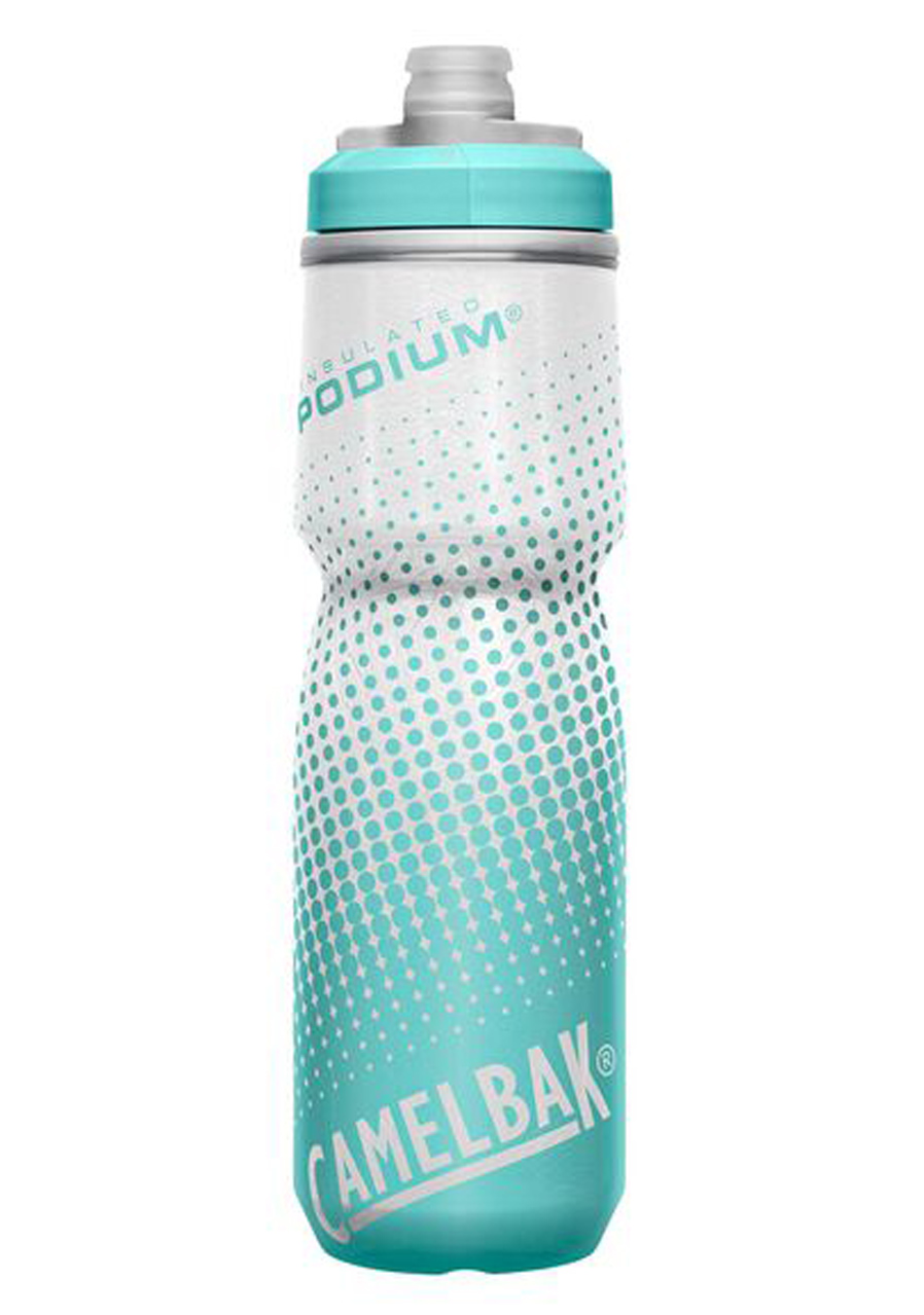 Dopraj si osvieženie aj počas tých najnáročnejších jázd s cyklistickou fľašou CamelBak Podium Chill 0,71l v elegantnom dizajne Teal Dot. Vďaka dvojstennej izolácii udrží tvoj nápoj dvakrát dlhšie studený než bežné cyklistické fľaše, čo je ideálne na tréning v horúcom počasí alebo dlhé výjazdy. Fľaša je vybavená osvedčeným ventilom Jet Valve™, ktorý umožňuje jednoduché pitie bez rozliatia – stačí stlačiť a napiť sa. Samouzavierací náustok zabezpečuje 100% tesnosť, takže nehrozí vytečenie v batohu alebo držiaku. Ergonomický tvar fľaše umožňuje jednoduché uchopenie a stláčanie jednou rukou. Vyrobená je zo zdravotne nezávadného plastu bez BPA, ktorý neabsorbuje pachy ani chute. Všetky časti sú ľahko rozoberateľné a vhodné do umývačky riadu.