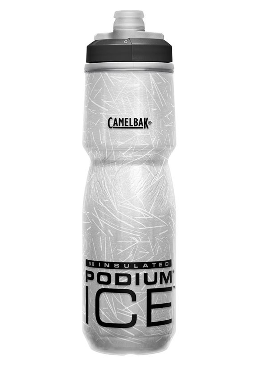 Izolovaná fľaša CamelBak Podium Ice 0,62l v elegantnej čiernej farbe prináša maximálny výkon a spoľahlivé osvieženie počas jazdy. Vďaka izolačnej vrstve z materiálu Aerogel udrží nápoj studený až päťkrát dlhšie v porovnaní s bežnými cyklistickými fľašami, čo je ideálne na horúce dni aj náročné tréningy. Fľaša je vyrobená z polypropylénu bez BPA, BPS a BPF s technológiou Hydroguard, ktorá zabezpečuje verný chuťový profil nápoja bez plastového zápachu. Patentovaný samouzáverný ventil Jet Valve™ umožňuje jednoduché pitie bez rozliatia a úplný otočný uzáver zabezpečuje bezpečné prenášanie plnej fľaše. Viečko a náustok sa dajú ľahko rozobrať a vyčistiť. Ergonomický tvar poskytuje pevný úchop, ľahké stláčanie a stabilitu v košíku na bicykli.