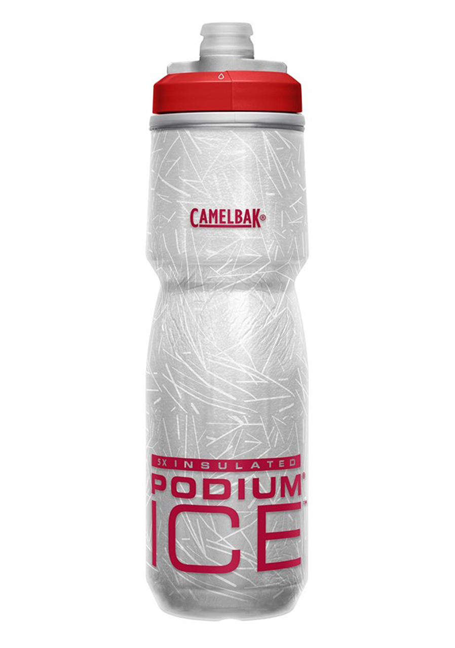 Izolovaná fľaša CamelBak Podium Ice 0,62l v atraktívnej farbe Fiery Red je navrhnutá pre maximálny výkon a dokonalé osvieženie počas jazdy. Vďaka izolačnej vrstve z materiálu Aerogel udrží nápoj studený až štyrikrát dlhšie v porovnaní s bežnými cyklistickými fľašami, čo je ideálne na horúce dni a dlhé tréningy. Fľaša je vyrobená z polypropylénu bez BPA, BPS a BPF s technológiou Hydroguard, ktorá zabezpečuje čistú chuť bez plastového zápachu. Patentovaný samouzáverný ventil Jet Valve™ zabraňuje kvapkaniu vody a úplný otočný uzáver zabezpečuje bezpečné prenášanie plnej fľaše. Viečko a náustok sa dajú ľahko rozobrať a vyčistiť. Ergonomický tvar poskytuje pevný úchop, ľahké stláčanie a bezpečné držanie v košíku na bicykli.