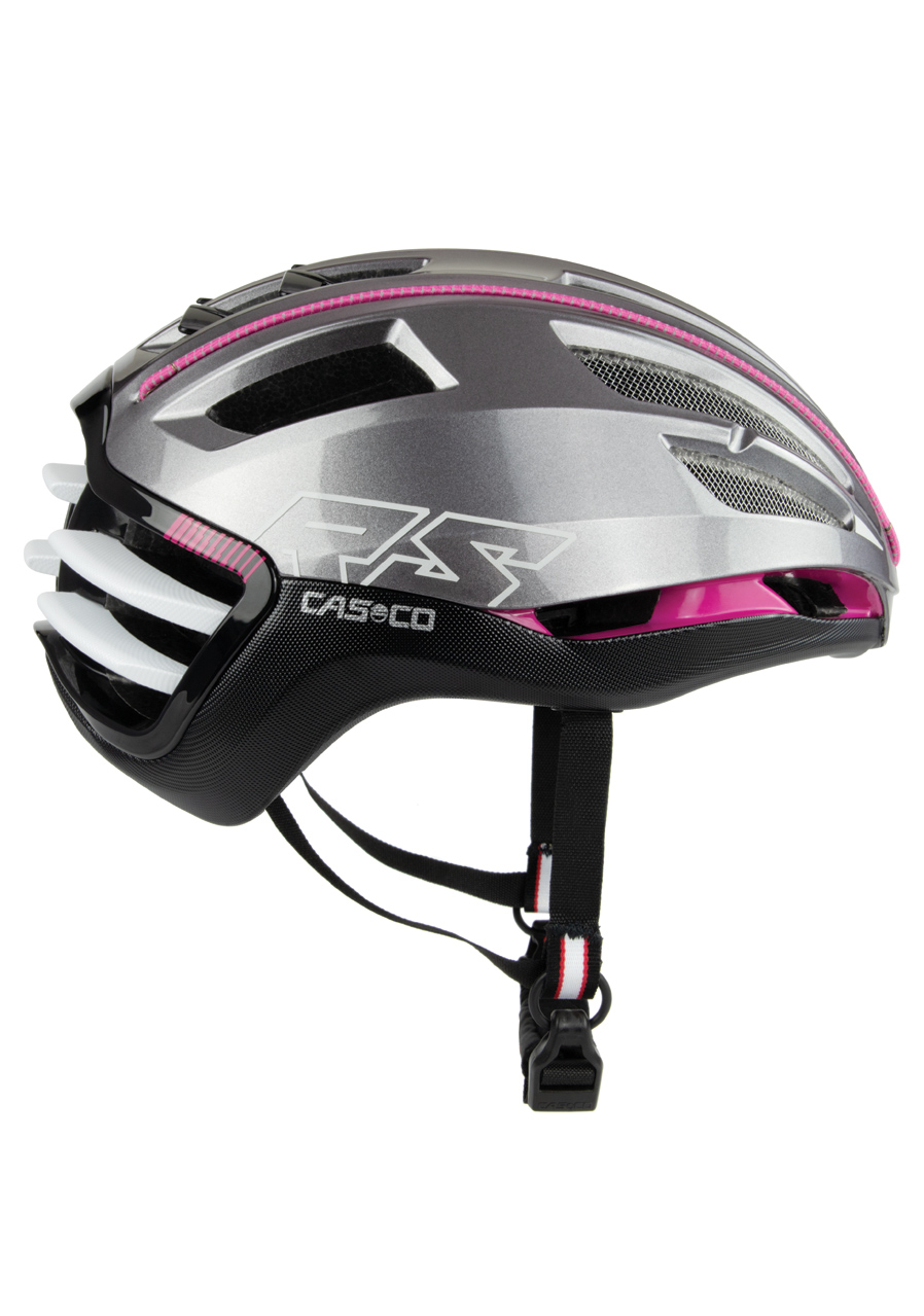 Aerodynamická cyklistická prilba s dvojitou škrupinovou konštrukciou pre maximálnu bezpečnosť - vnútorná sieťka pre optimálnu ventiláciu a komfort počas jazdy - zadný bezpečnostný systém pre stabilnú aerodynamiku vo všetkých polohách - prispôsobenie veľkosti pomocou upínacieho krúžku - rýchle a jednoduché zloženie prilby vďaka patentovanému systému CASCOLOC - elegantná kombinácia antracitovej a fuchsiovej farby