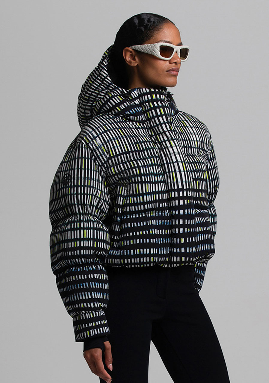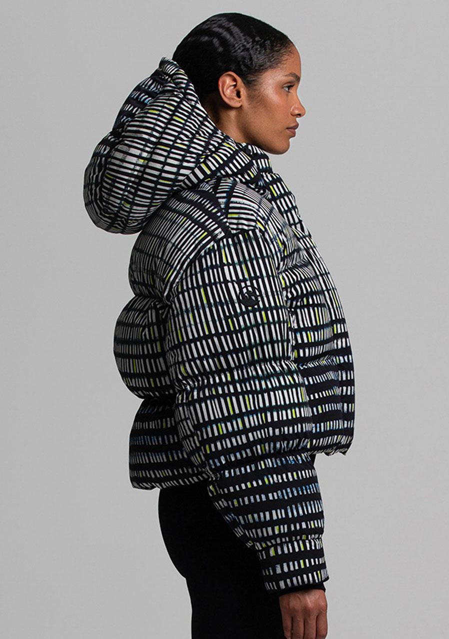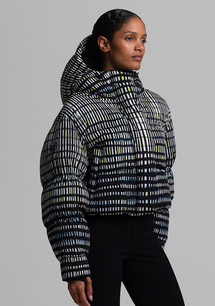 Materiál I: 100% polyamid Materiál II: 70% vlna, 30% polyamid Výplň: 90% kachní prachové peří, 10% peří Podšívka: 100% recyklovaný polyester