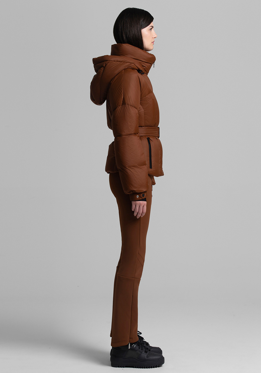 Dámská bunda Cordova Monterosa v elegantním odstínu Chestnut spojuje luxusní vzhled s funkčností. Tato bunda s měkkou, matnou skořepinou a péřovou výplní RDS je nejen hřejivá, ale také dokonale sedí díky vypasovanému střihu a odnímatelnému pásku, který podtrhne ženskou siluetu. Voděodolná skořepina a zipy Aquaguard chrání před nepříznivým počasím, zatímco certifikace OEKO-TEX zaručuje bezpečnost materiálů. Vnitřní kapsy a návleky na rukávech přidávají funkčnost a stylový vzhled umocníte kombinací s kalhotami St. Moritz.