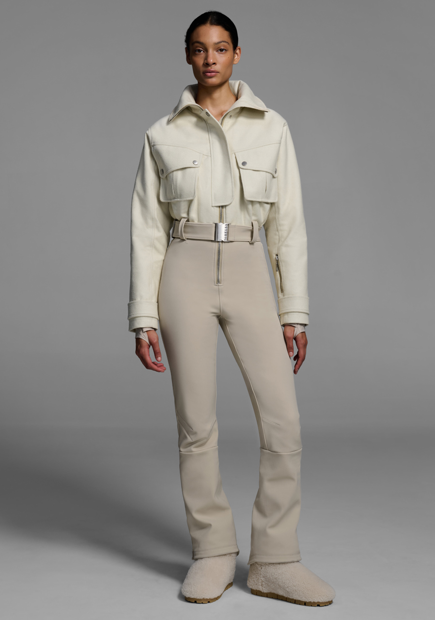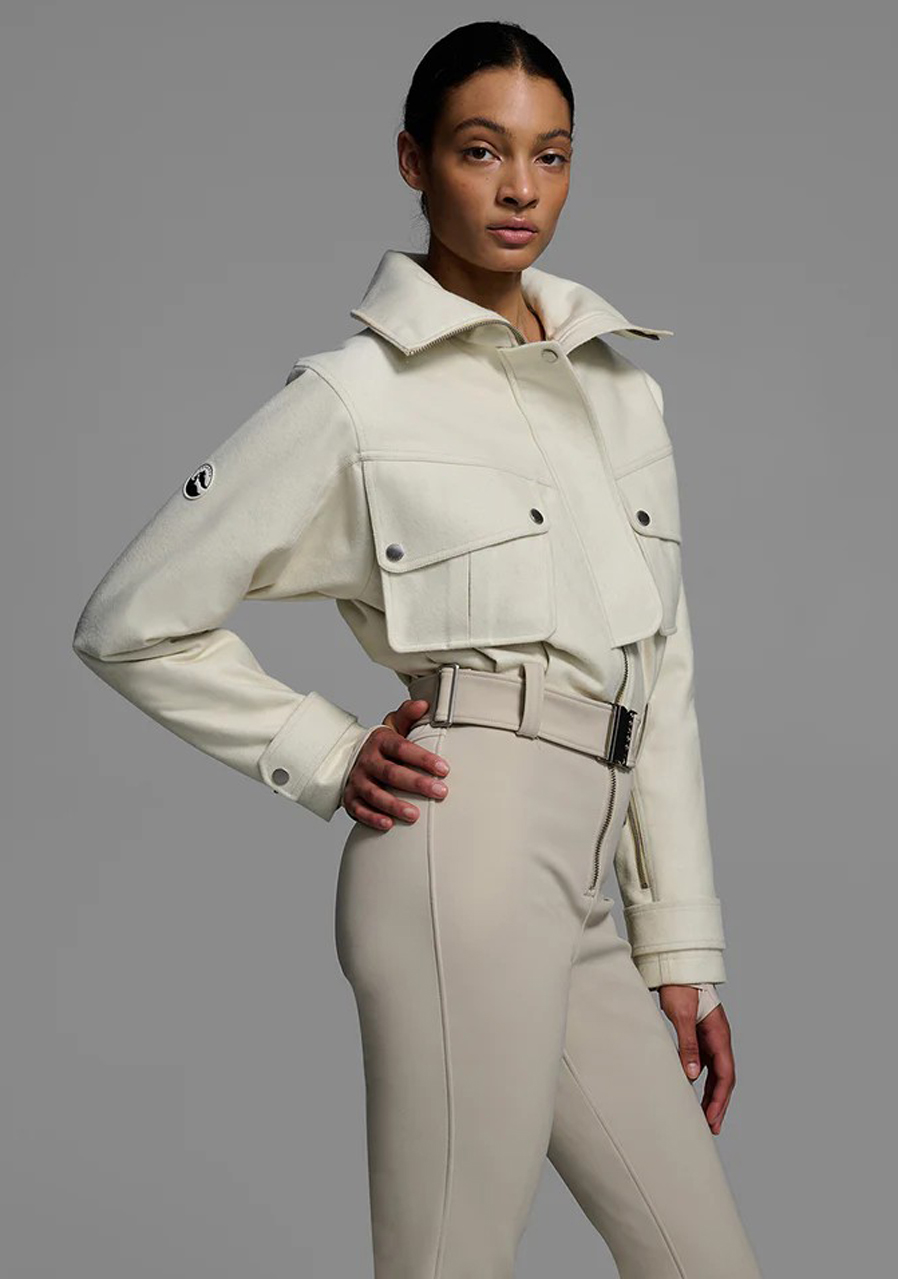 Lyžiarsky overal Telluride spája praktický dizajn s priliehavým tvarovaným strihom, ktorý podčiarkuje ženskú siluetu. Zateplený vlnený vrchný diel a nepremokavé talianske 4cestné strečové nohavice s 20K vodeodolnosťou vytvárajú ideálnu kombináciu pohodlia tepla a voľnosti pohybu. Čierne pogumované kovanie zipsy Aquaguard a nastaviteľný pásik dodávajú modelu modernú funkčnosť a nadčasový štýl inšpirovaný pracovným oblečením. Telluride je špičkový overal na lyžovanie horské dni aj elegantné zimné nosenie.