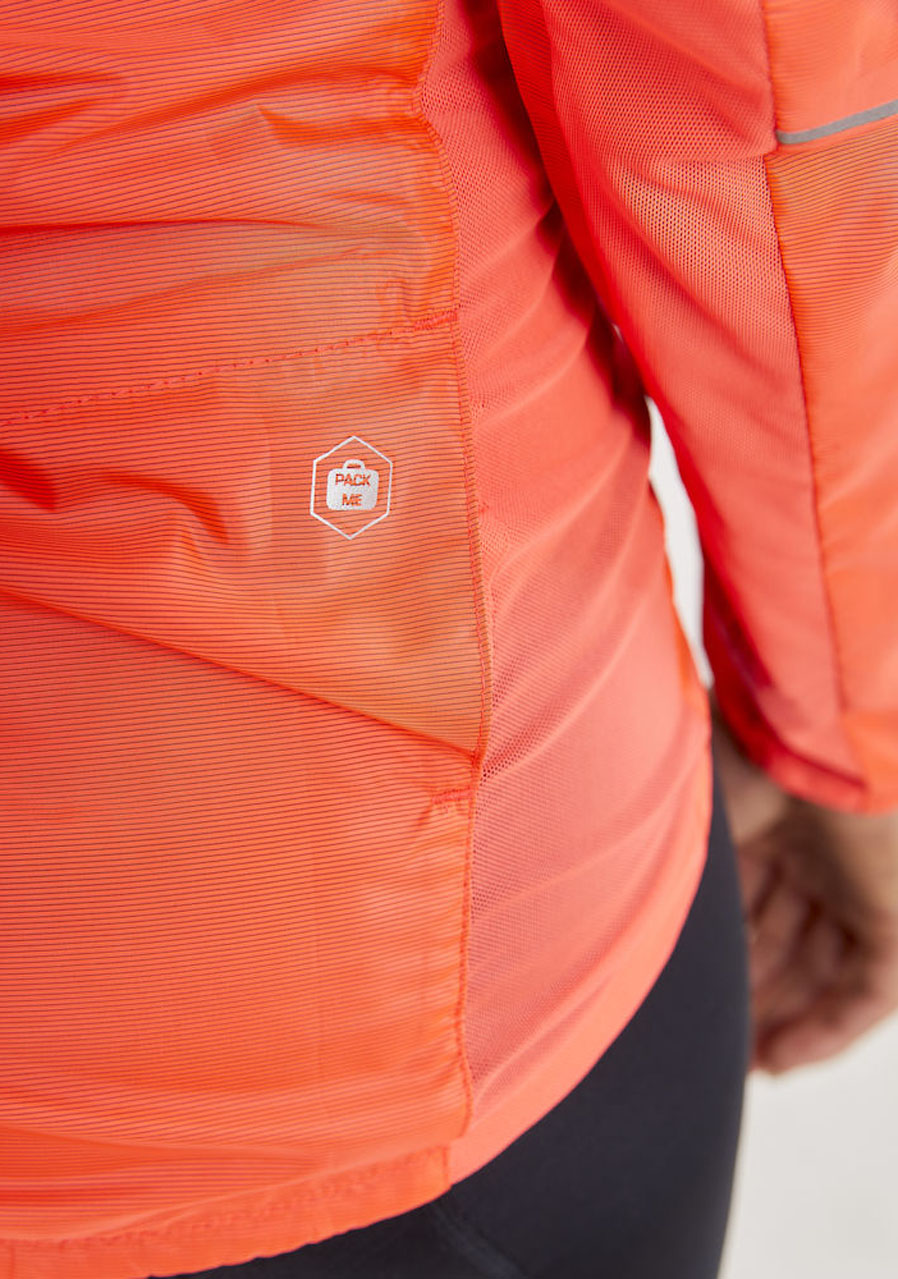 Dámska cyklistická bunda Craft Essence Light Wind W je ultralahká a ľahko zbaliteľná bunda vhodná na jazdy v nestálom počasí počas jari a leta. Vyrobená z vetruodolného materiálu s vodoodpudivou úpravou DWR, poskytuje základnú ochranu pred nepriaznivými vplyvmi počasia. Ergonomický strih zohľadňuje pozíciu na bicykli a predĺžený zadný diel chráni spodnú časť chrbta. Mäkký fleece vo vnútri goliera zvyšuje pohodlie, zatiaľ čo reflexné prvky na chrbte zlepšujú viditeľnosť. Bunda sa dá zbaliť do skrytej kapsy vo šve.