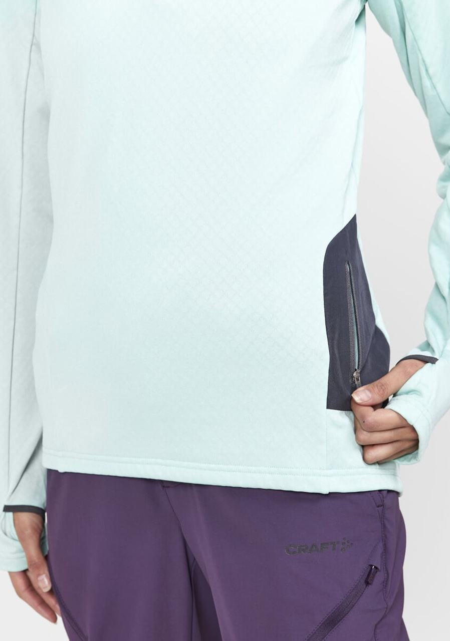 Další parametry: Materiál: Složení 93% polyesteru a 7% spandex zajišťuje skvělou elasticitu a prodyšnost, což vám umožní se volně pohybovat při jakékoli aktivitě. Hřejivý fleece: Vnitřní strana je jemně česaná a strukturovaná, poskytující příjemný a teplý pocit, který oceníte během chladnějších dní. Praktické detaily: Rolák je vybaven kapsičkou na zip na levém boku pro bezpečné uložení drobností, jako jsou klíče nebo kreditní karta. Ergonomické rukávy: Na koncích rukávů se nachází otvory pro přetažení přes palce, které pomáhají udržet ruce v teple a zajišťují pohodlné nošení. Dámský rolák CRAFT CORE Trim Thermal Midlayer je ideální volbou pro aktivní ženy, které hledají komfortní, stylový a funkční oděv. Ať už se chystáte na trénink nebo relaxujete v městských ulicích, tento rolák vám poskytne vše, co potřebujete pro maximální pohodlí.