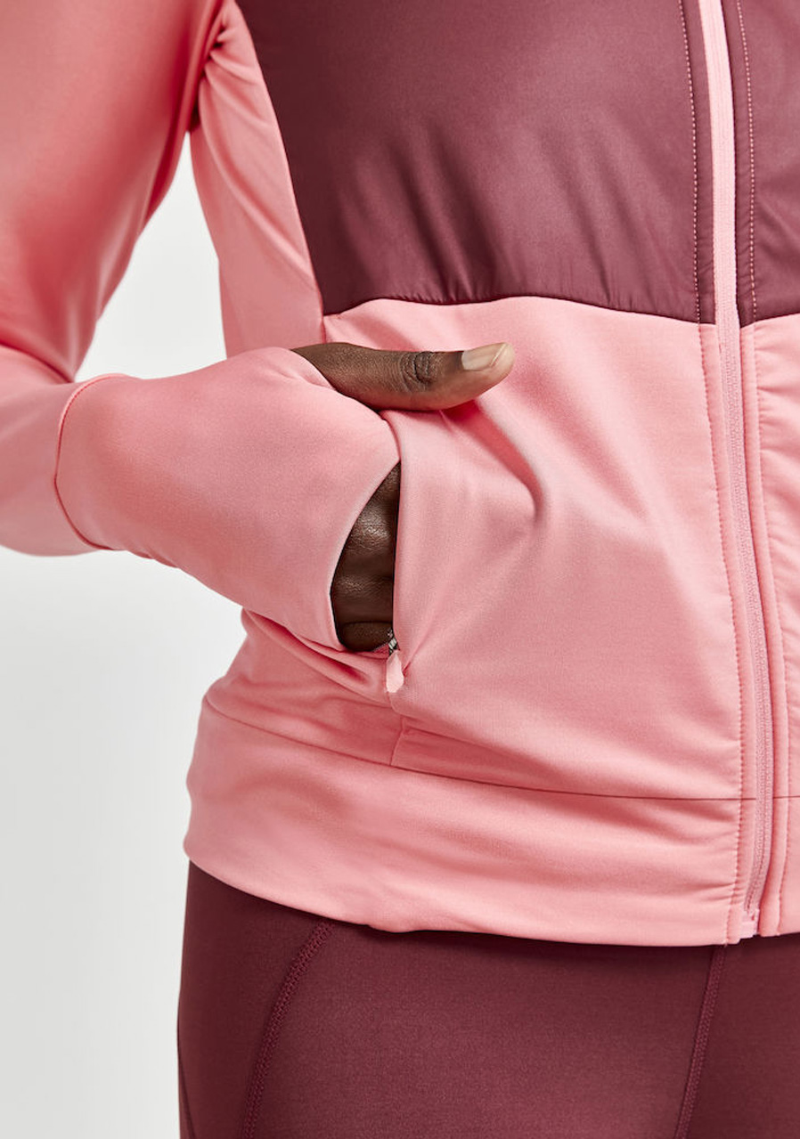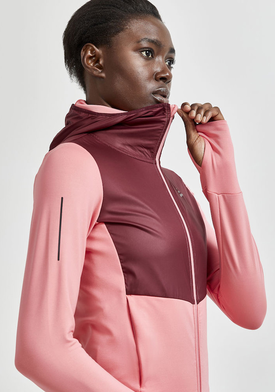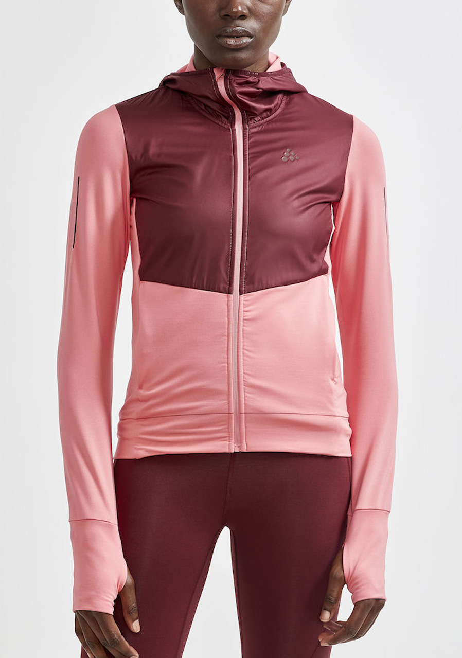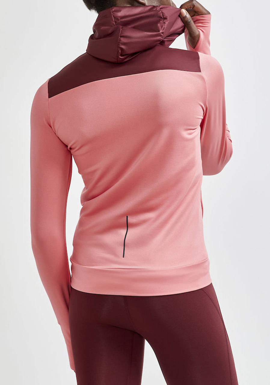 dámská funkční mikina s kapucí CRAFT ADV Charge Hood vhodná na sport i volný čas. Materiál: 89% polyester, 11% elastan; 100% polyester - mírné zateplení předního dílu - větruodolná materiál na hrudníku a kapuci - dvě postranní skryté kapsy na zip - rukávy zakončeny širokou manžetou s průstřihy pro přetažení přes palce