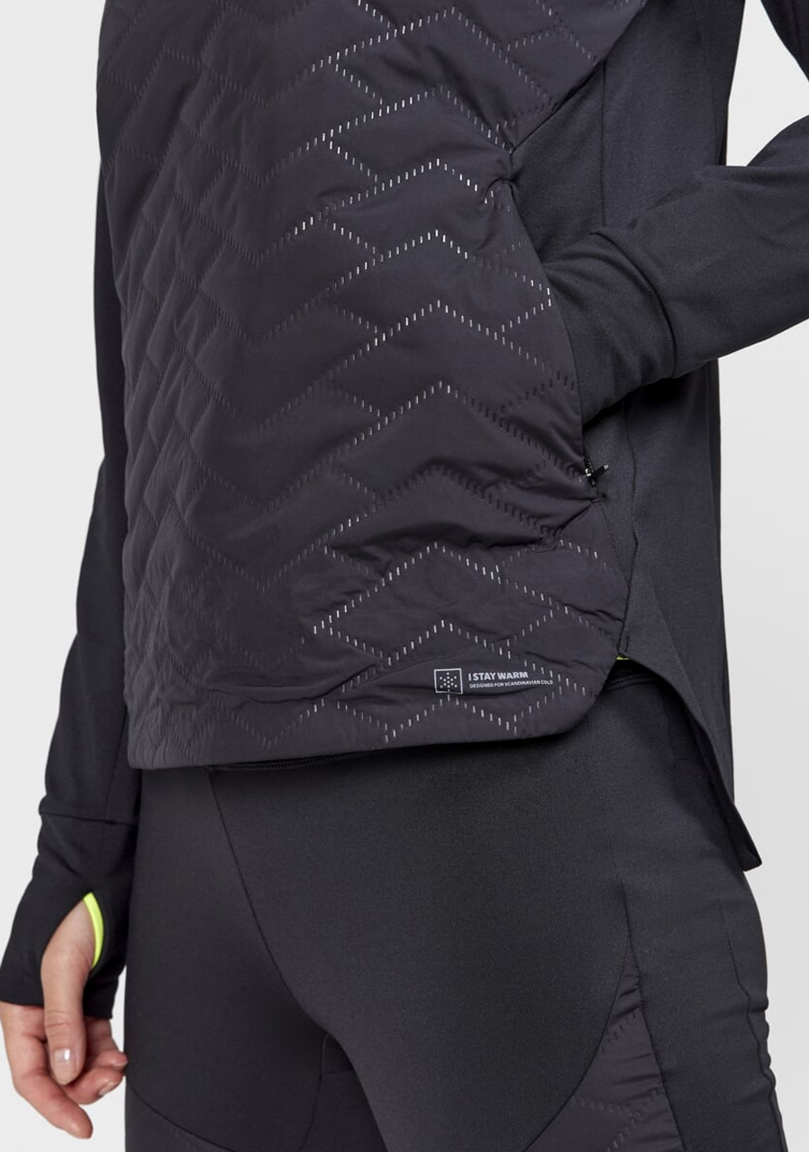 Další parametry: Přední část bundy je zateplená, což poskytuje ochranu před chladem, zatímco větruodolná membrána chrání před průvanem. Límec se zipem nabízí dodatečnou ochranu krku proti větru a chladu. Reflexní detaily po celém obvodu zajišťují lepší viditelnost a bezpečnost během běhu za snížené viditelnosti. Měkký, česaný fleece z vnitřní strany bundy poskytuje příjemný pocit a zvyšuje tepelnou izolaci. Široké manžety na rukávech s otvory na palce umožňují přetažení přes ruce, čímž zajišťují lepší ochranu před chladem. Bunda má dvě přední kapsy na zip, které poskytují dostatek místa pro drobné předměty, jako jsou klíče nebo telefon. Tato bunda je ideální volbou pro běžkyně, které hledají funkční a pohodlné řešení pro zimní tréninky. Zateplený přední díl v kombinaci s elastickými, prodyšnými zády a rukávy zajistí, že zůstanete v teple, suchu a pohodlí i při intenzivní fyzické aktivitě v chladných podmínkách.