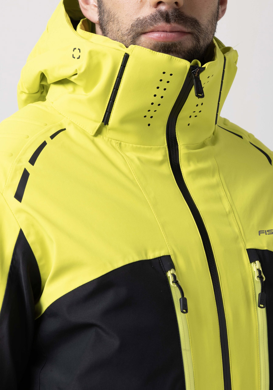 Bunda je vyrobená z technického dvojvrstvového materiálu s vodeodolnou membránou a podľapenými švami, ktoré zaisťujú odolnosť voči nepriaznivým podmienkam. Vnútorné zateplenie poskytuje optimálny tepelný komfort bez zbytočného objemu. Nechýbajú praktické detaily ako snehový pás, kapsa na skipas, odvetrávanie v podpazuší a ergonomicky tvarované rukávy pre maximálnu voľnosť pohybu.