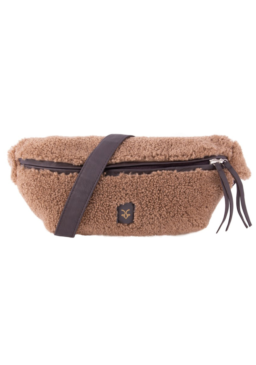 Ľadvinka je doplnená pevnými koženými prvkami vrátane nastaviteľného popruhu a detailov pri zipsu, čo zabezpečuje dlhú životnosť a elegantný kontrast k mäkkému beránku. Praktická hlavná priehradka so zipsom pojme všetky nevyhnutnosti – mobil, kľúče, peňaženku. Nosí sa pohodlne okolo pása alebo cez rameno.
