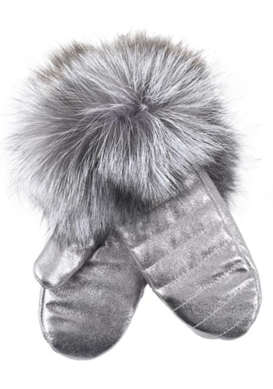 Luxusné zimné palčiaky z jahňacej kožušiny v elegantnom striebornom prevedení