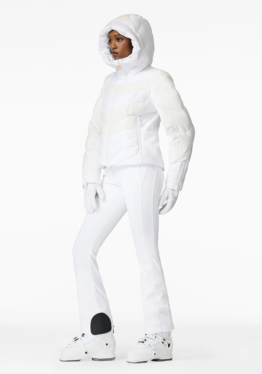 Táto bunda v klasickom regular fit strihu je vyrobená z čiastočne recyklovaných materiálov, ktoré spájajú ochranu životného prostredia s výbornými funkčnými vlastnosťami. Podšívka s antibakteriálnou úpravou zabezpečuje príjemný pocit sviežosti aj pri dlhšom nosení. Tepelnú izoláciu tvorí certifikované husacie perie (RDS), ktoré udržuje optimálnu teplotu aj v náročných podmienkach. Bunda disponuje dvoma vonkajšími vreckami, dvoma vnútornými vreckami a vreckom na skipas na rukáve. Praktickým doplnkom je pevná kapucňa, odnímateľný snehový pás a pletené manžety na vnútornej strane rukávov.