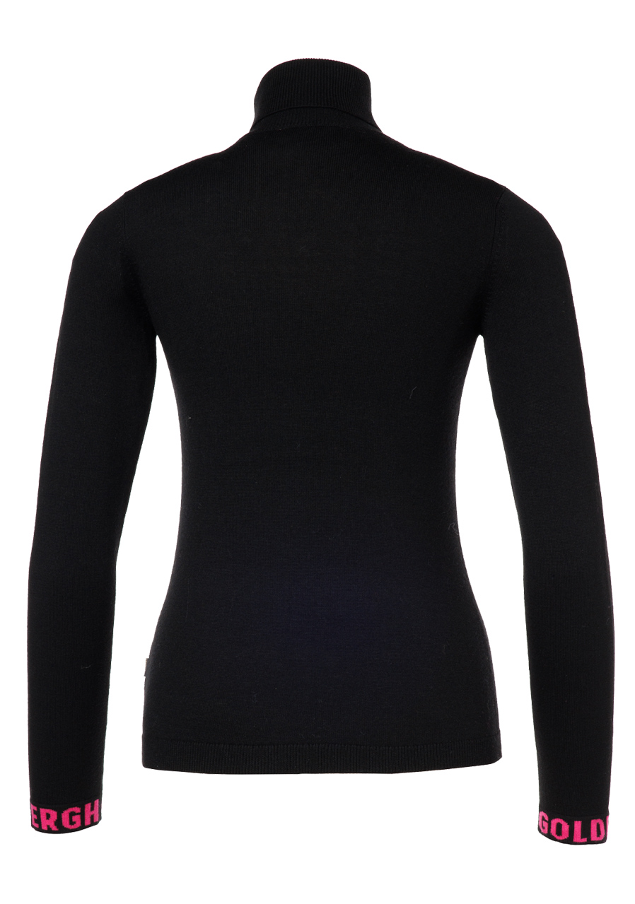 Sveter Goldbergh Amour Long Sleeve Knit Sweater v čiernej farbe je štýlový a funkčný kúsok, ideálny na mestské outdoorové aktivity a chladnejšie počasie. Vďaka merino vlne ponúka výborné izolačné vlastnosti a zároveň zostáva priedušný. Sveter má slim fit strih, ktorý zabezpečuje priliehavý a elegantný vzhľad. Dizajn zahŕňa logo Goldbergh na manžetách a kovové logo značky na rukáve. Obojstranný golier poskytuje nielen tepelný komfort, ale aj štýlový vzhľad, ideálny na chladné dni.