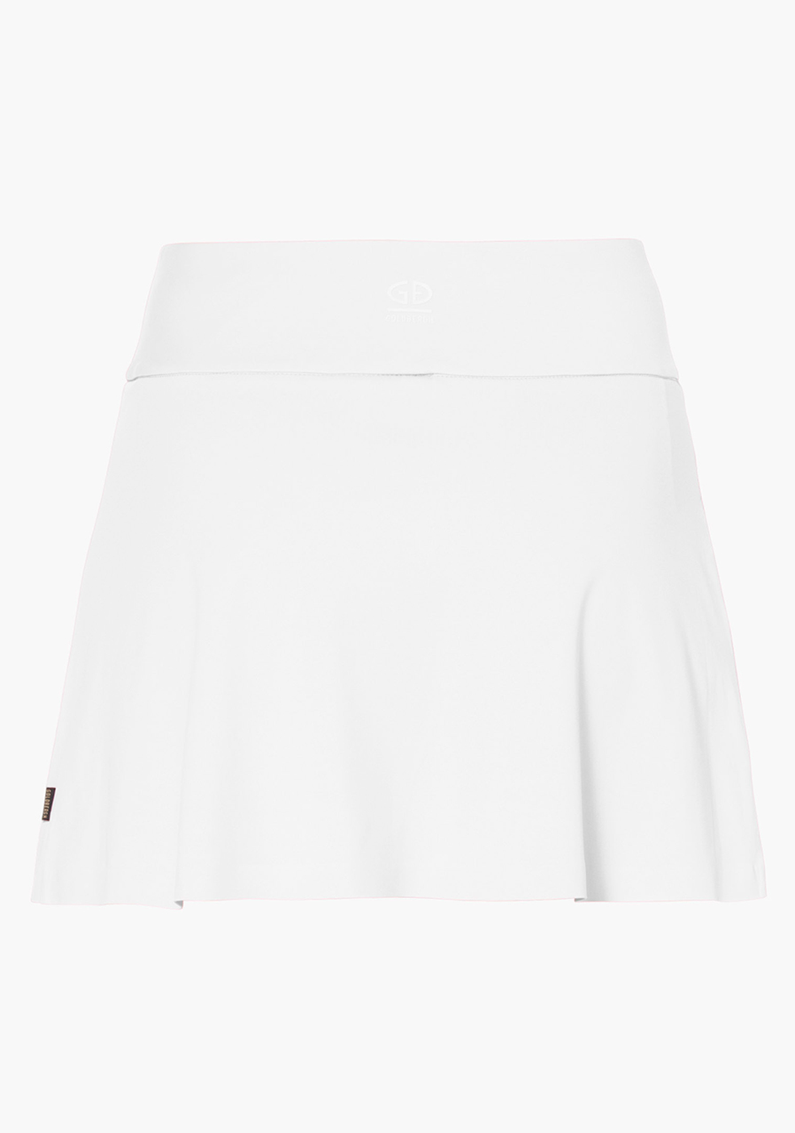 Dámska športová sukňa Goldbergh Anais v bielej farbe a v predĺženej dĺžke. Veľmi pružný materiál, ktorý je vdušný a bude skvelým spoločníkom pre šport. Sukne sa hodí na tenis či golf, a môžete v nej vyraziť aj do mesta. Vhodná pre aktívne ženy, ktoré sú rady aktívne a pritom chcú cítiť pohodlie. Vnútorné elastické kraťasy vám poskytujú väčšiu bezpečie a zároveň obsahujú dve postranné vrecká.