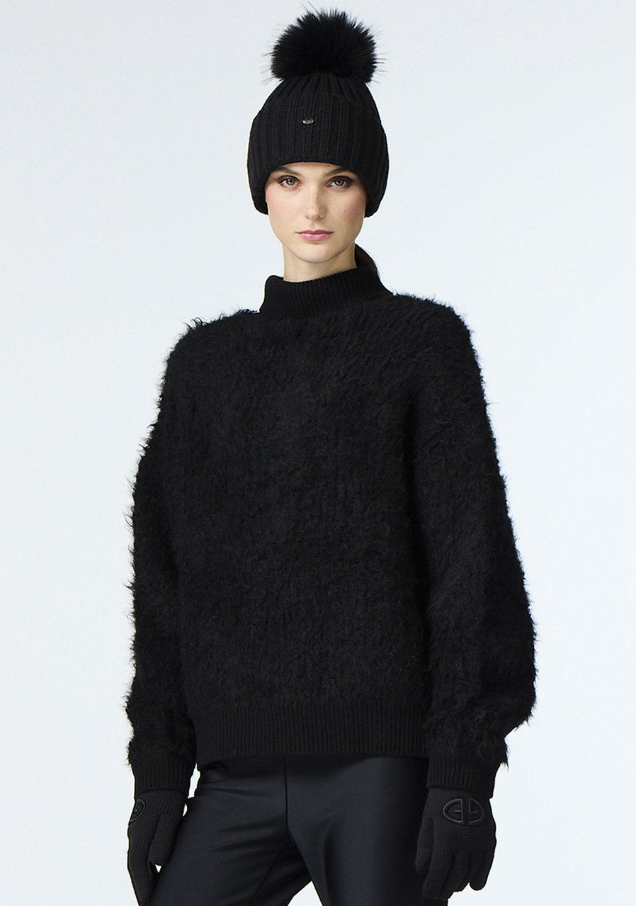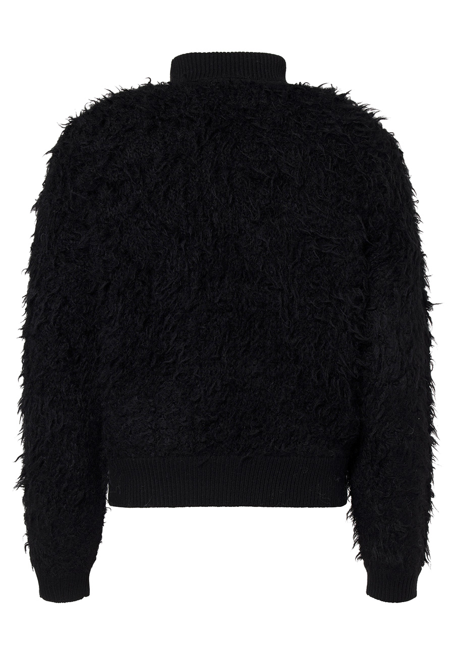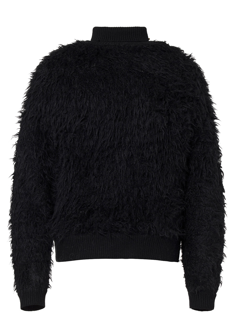 Tento sveter v pohodlnom oversize strihu je vyrobený z mäkkého chlpatého úpletu, ktorý vás zahreje a zároveň dodá štýlový, mierne voľný vzhľad. Rovné rukávy a skladací rebrovaný golier podčiarkujú jednoduchú eleganciu tohto kúsku. Na rukáve je decentná kovová značka a na boku tkaná etiketa, ktoré zdôrazňujú značkový charakter. Sveter zodpovedá bežnej veľkosti, no vďaka oversize strihu odporúčame vybrať si svoju štandardnú veľkosť.
