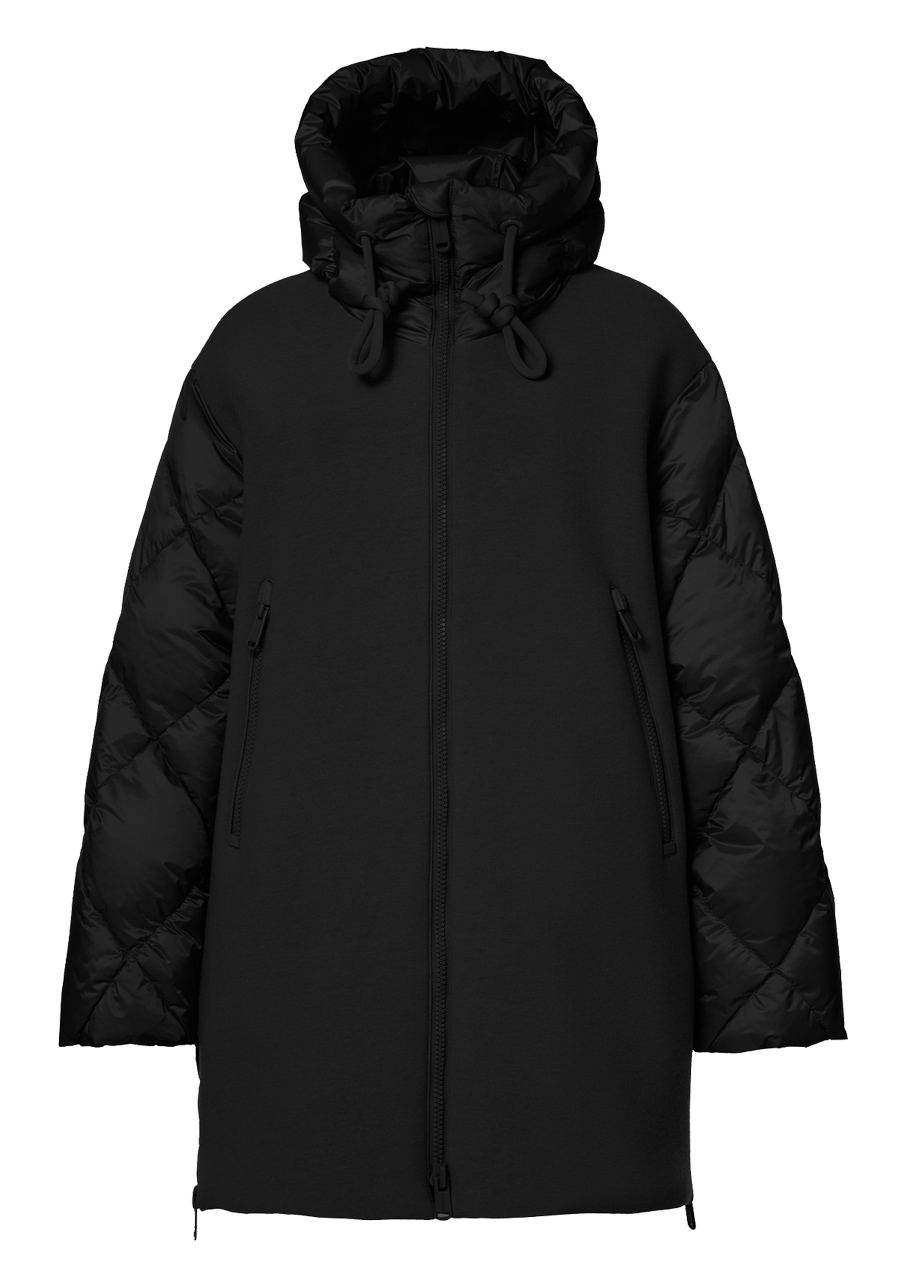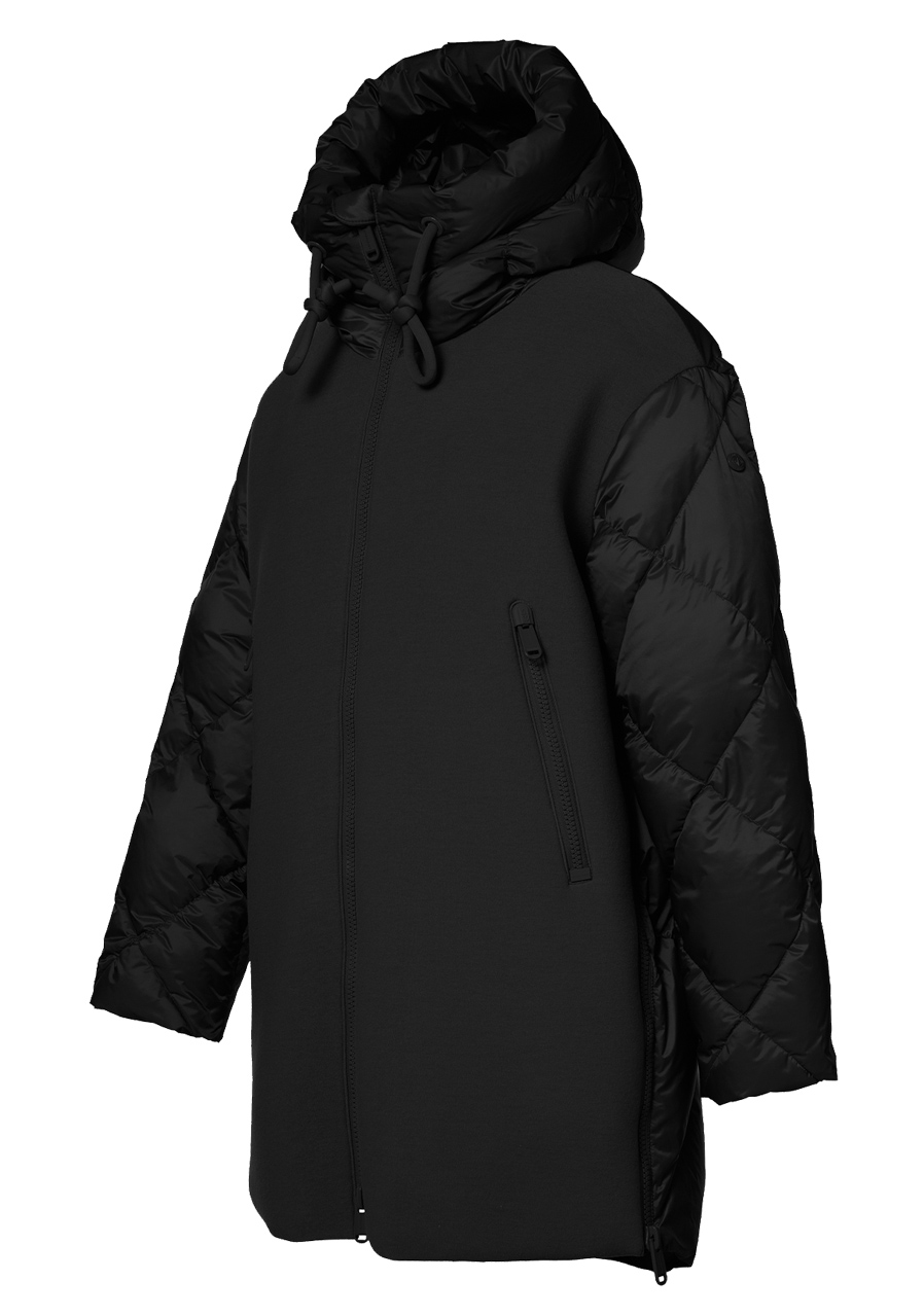 Vonkajší materiál: 73% polyester, 16% polyuretán, 11% umelé hodvábie Vnútorný materiál: 85% polyamid, 15% polyuretán s úpravou proti zápachu Výplň: 90/10 husacie perie (90% páperie, 10% perie)