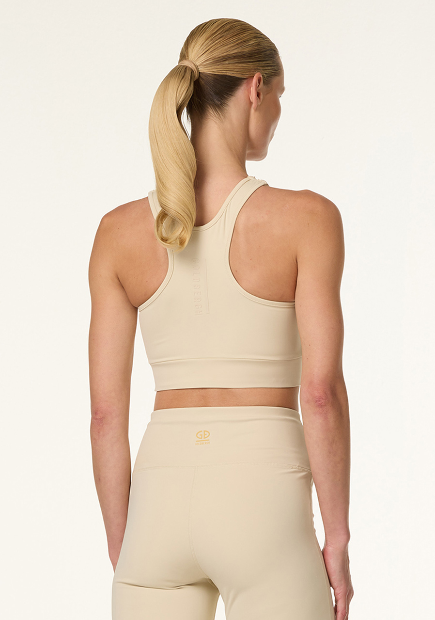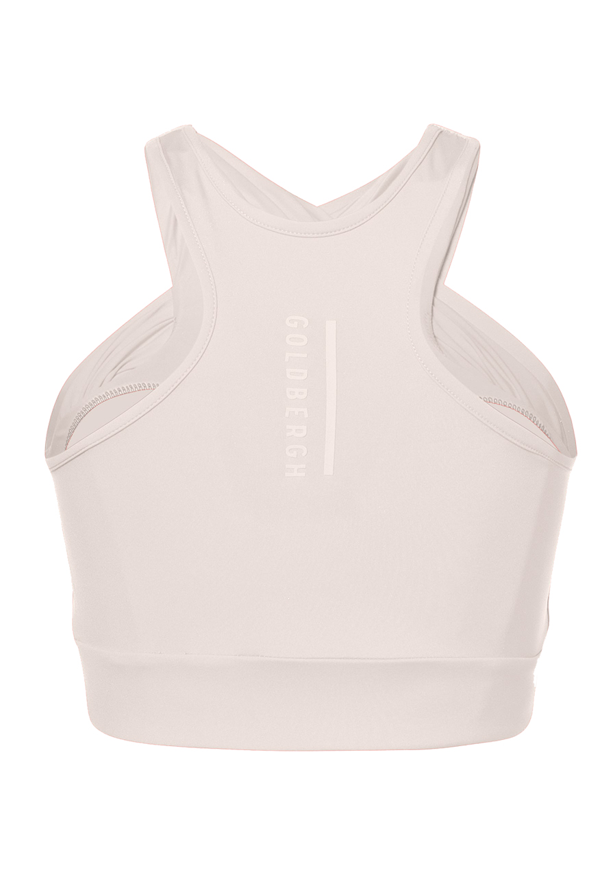 Podprsenka Goldbergh Drape zaujme drapovaným horným dielom. Túto podprsenku oceníte k svojmu každodennému outfitu, ale aj do fitness centra či na tenisový kurt. Vyrobená z pružnej tkaniny PowerStretch™ Light, ktorá zabezpečuje sviežosť a pohodlie vďaka efektívnemu odvádzaniu vlhkosti a nadbytočného tepla. Pod prsiami je podporný pás, ktorý vám dodá dostatočnú oporu. Vystužená podprsenka s nízkou úrovňou opory a vyberateľnými košíčkami. Na chrbte lesklý nápis Goldbergh.