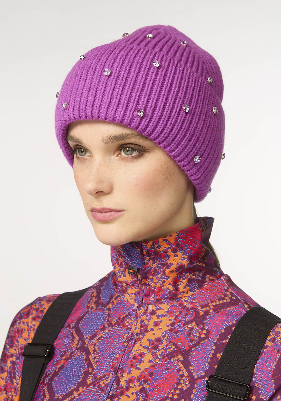 Táto čiapka v univerzálnej veľkosti kombinuje pružný 1x1 rebrovaný úplet s mäkkou polar fleece podšívkou na vnútornej strane, ktorá zvyšuje pohodlie a tepelný komfort. Celý model je zdobený trblietavými kamienkami strass, ktoré jej dodávajú elegantný a výrazný vzhľad. Čiapka je dostupná v niekoľkých farebných variantoch s tónovanými alebo viacfarebnými kamienkami, takže ľahko doladíte svoj zimný outfit.