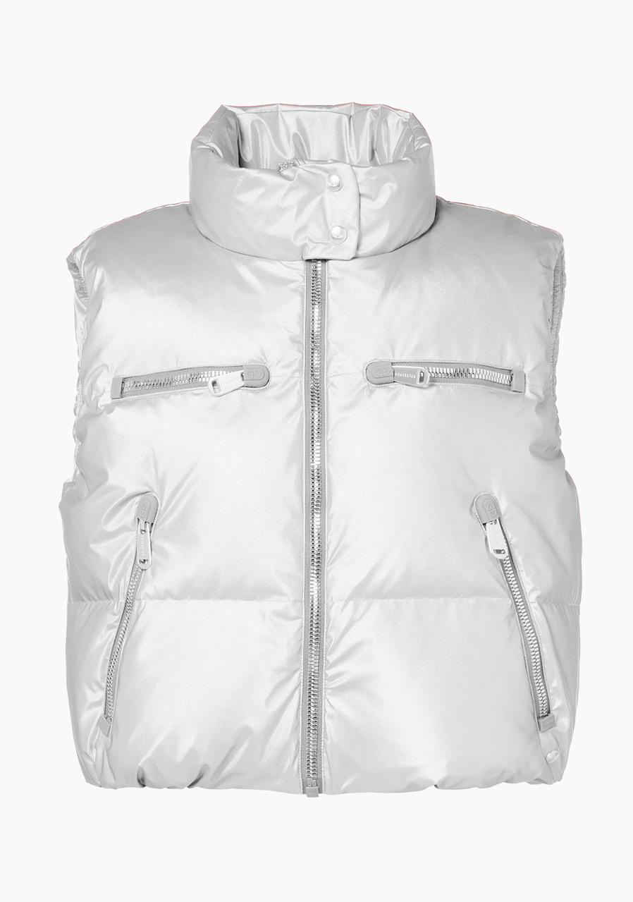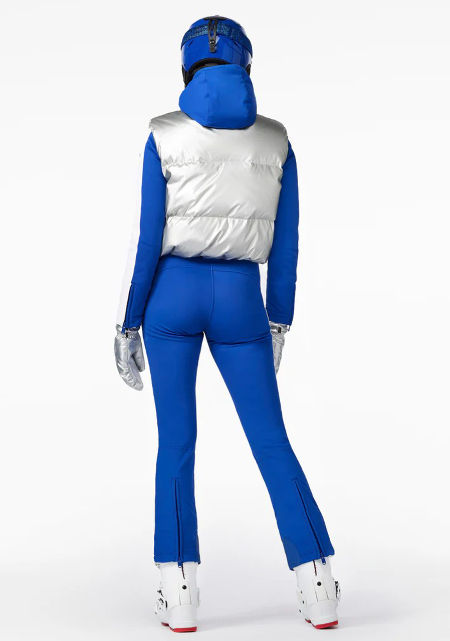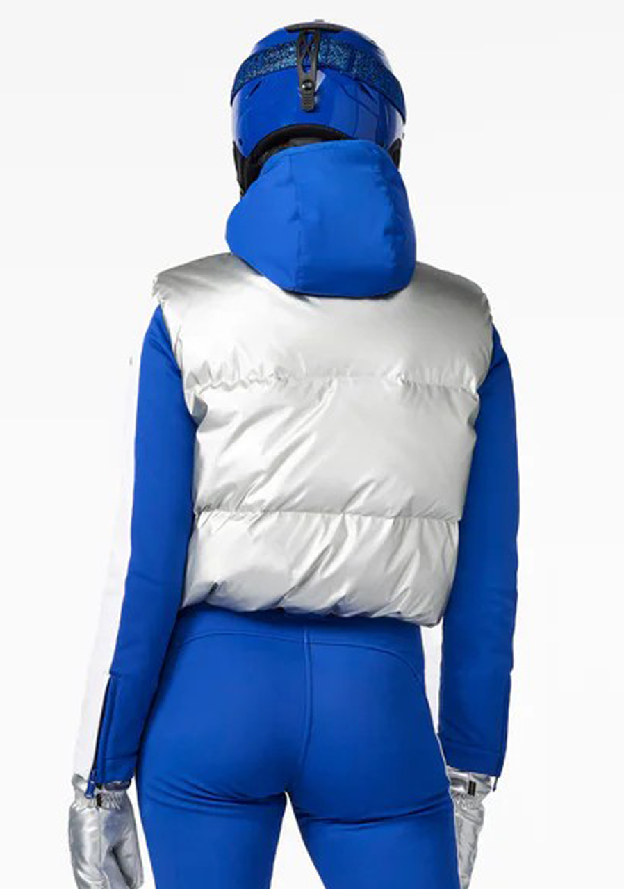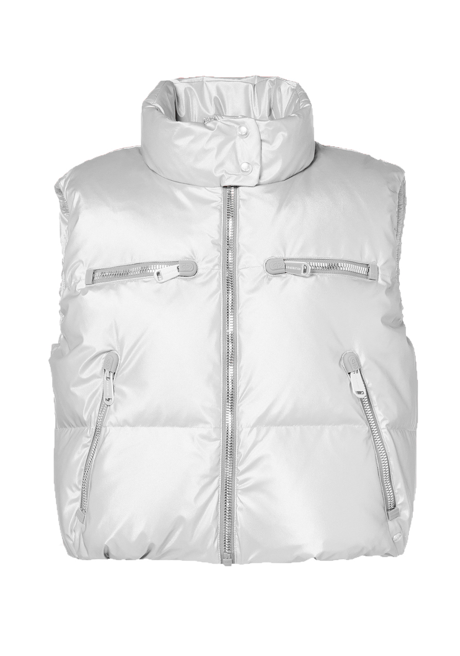 Vesta Goldbergh Éclat Ski Bodywarmer v striebornej farbe je luxusná a technicky vyspelá vesta určená predovšetkým pre zimné športy, ako je lyžovanie. Vďaka svojim technickým vlastnostiam je vhodná pre rekreačné lyžiarky aj aktívne dni na svahu. Dámsky oversized strih s elegantným dizajnom, ktorý zvýrazňuje ženské línie, skvele padne aj tým najnáročnejším. Dve bočné vrecká na zips poskytujú bezpečné uloženie drobností, rovnako ako dve vnútorné vrecká. Vesta je vybavená aj odnímateľným snehovým pásom. Táto vesta kombinuje špičkový dizajn s funkčnými materiálmi a je ideálnou voľbou pre každú, ktorá hľadá luxusný a zároveň technicky prepracovaný kúsok do zimného šatníka.