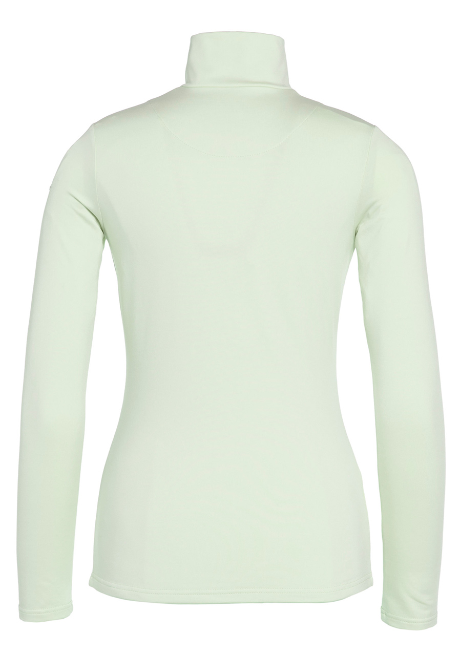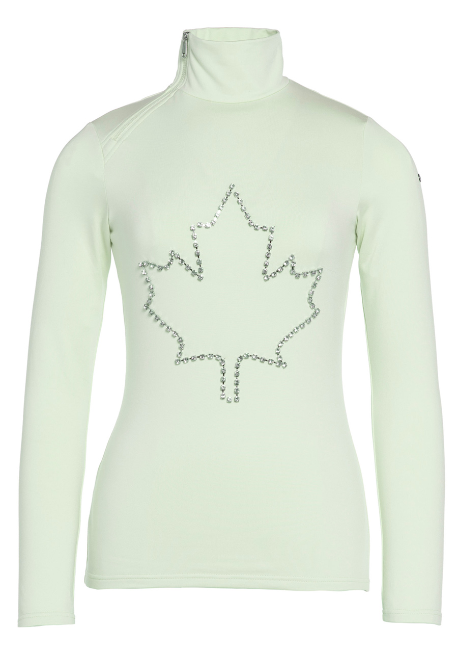 – dámsky funkčný rolák s 1/2 zipsom – vhodný ako prvá alebo druhá vrstva – vnútorná strana je zateplená česaným fleecom – diagonálny zips umiestnený na ramene – kryštáliky Swarovski ® v tvare javorového listu na hrudi – kovové logo Goldbergh na ľavom rukáve – materiál: 85 % recyklovaný polyester, 15 % elastan