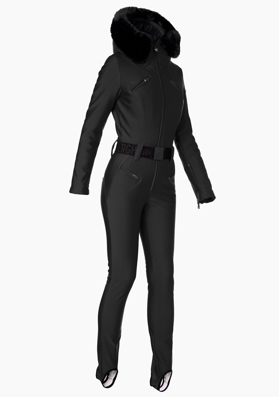 Goldbergh Glisser Faux Border Ski Suit v černé barvě je stylová lyžařská kombinéza, která kombinuje sofistikovaný design s vysokou funkčností. Tento oblek je ideální volbou pro ženy, které chtějí na sjezdovkách vypadat skvěle a zároveň se cítit pohodlně a chráněné. Kombinéza je vyrobena z voděodolných a prodyšných materiálů s technologií Powerstretch, které zajistí maximální pohodlí i v nepříznivém počasí, a je vybavena speciální anti-odor úpravou. Integrovaná izolace vás udrží v teple i při nízkých teplotách, takže se budete cítit komfortně po celý den na horách. Kombinéza má dostatek kapes (šest vnějších, dvě vnitřní, kapsa na skipass) na zip pro bezpečné uložení drobných věcí jako je telefon, klíče nebo skipas. Dále disponuje elastickým opaskem, zipy na rukávech, gumičkami na nohavicích pro snadnější oblékání a odnímatelnými sněhovými manžetami. Tato kombinéza ve slim fit střihu je nejen funkční, ale také mimořádně stylová, ideální pro ty, kteří ocení luxusní módní kousky i při zimních sportech. Parametry: Vnější materiál: 80% polyamid, 20% elastan; umělá kožešina - 100% polyester Vnitřní materiál: první - 86% polyamid, 14% elastan; druhý - 100% polyamid Výplň: první - 90/10 kachní peří (90% prachové peří, 10% peří); druhá - 100% polyester Primaloft výplň Vodní sloupec: 10 000 mm Prodyšnost: 5 000 g/m²/24h