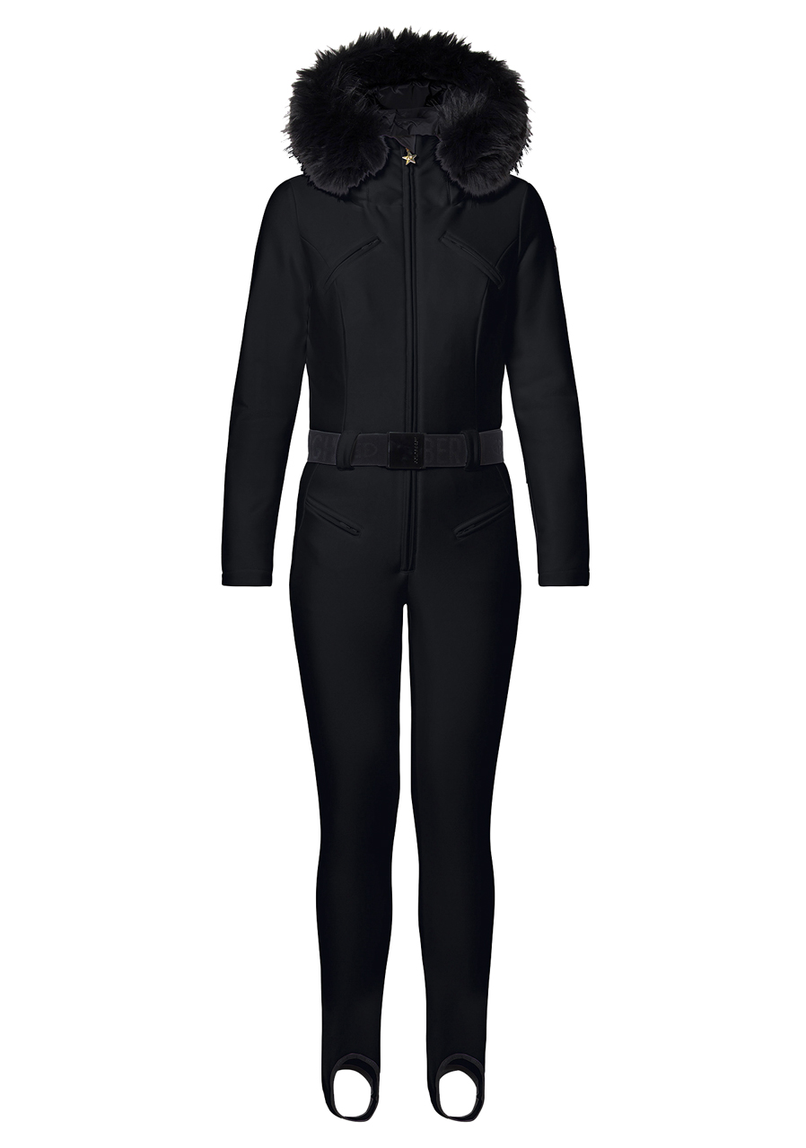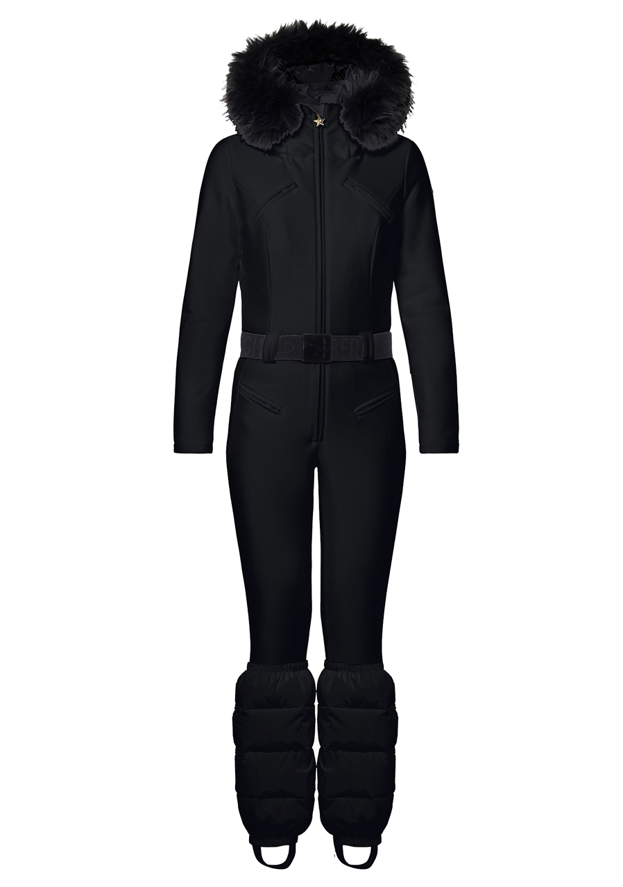 Táto priliehavá kombinéza je navrhnutá pre náročné lyžiarky, ktoré požadujú špičkový výkon aj štýl. Spája certifikované kačacie perie (RDS) a výplň Primaloft® pre optimálny tepelný komfort pri zachovaní ľahkosti a voľnosti pohybu. Pružná podšívka s antibakteriálnou úpravou zaručuje pohodlie počas celého dňa. Praktickými prvkami sú štyri vonkajšie vrecká, dve vnútorné vrecká, vrecko na skipas, elastický pásik, zipsy na rukávoch, odnímateľné snehové návleky a pútka pod nohy na zabezpečenie nohavíc. Kapucňu zdobí aplikácia hviezdy z umelej kože a model je dostupný aj vo variante s kožušinovým lemom pod kódom GB026-91-254.