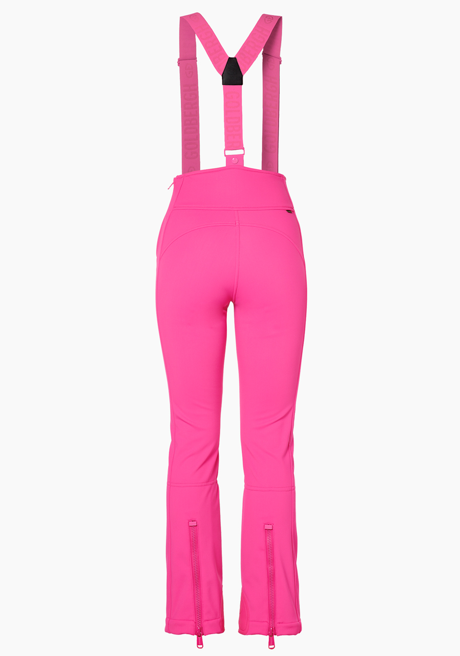 Goldbergh High End Ski Pants v ružovej farbe sú ideálnou voľbou pre náročné lyžiarky, ktoré vyžadujú funkčnosť aj štýl. Tieto elegantné nohavice sú vyrobené z vysoko kvalitnej zmesi polyamidu a elastanu, ktorá zabezpečuje pružnosť a pohodlie pri pohybe. Disponujú vysokým vodným stĺpcom a priedušnosťou, vďaka čomu vás udržia v suchu aj v náročných podmienkach. Nohavice majú odnímateľné elastické traky, dve vrecká na zips a snehové manžety v spodnej časti, ktoré zabraňujú prenikaniu snehu. Zipsy na zadnej strane nohavíc umožňujú jednoduché obliekanie cez lyžiarky. Model so slim fit strihom dokonale padne. Tento model spája sofistikovaný vzhľad so špičkovými technickými parametrami, vďaka čomu je ideálnou voľbou pre luxusné lyžovanie.