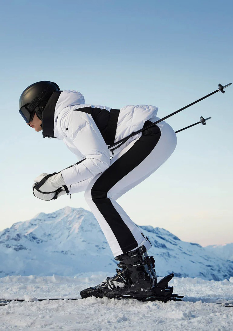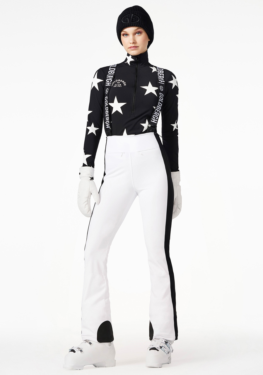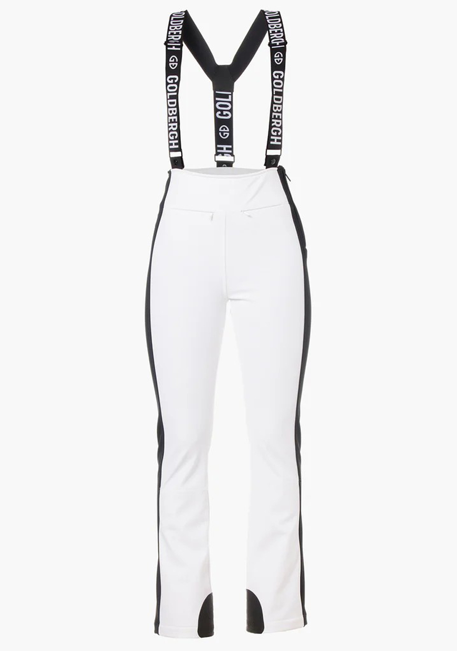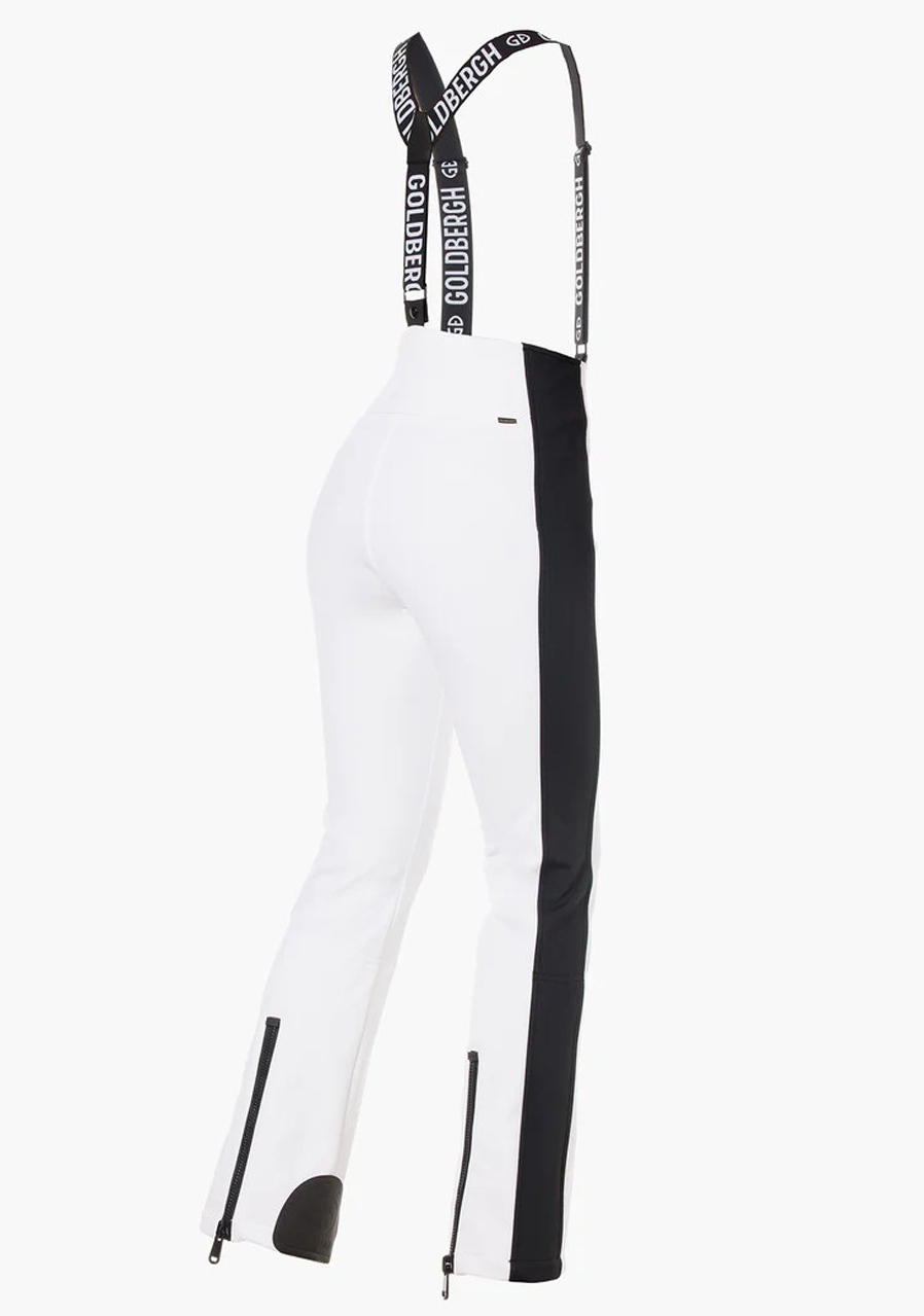 Goldbergh High End Ski Pants v bielej farbe sú ideálnou voľbou pre náročné lyžiarky, ktoré požadujú funkčnosť a štýl. Tieto elegantné nohavice sú vyrobené z vysoko kvalitnej zmesi polyamidu a elastanu, ktorá zabezpečuje pružnosť a pohodlie pri pohybe. Disponujú vysokým vodným stĺpcom a priedušnosťou, vďaka čomu vás udržia v suchu aj v náročných podmienkach. Nohavice majú odnímateľné elastické traky, dve vrecká na zips a snehové manžety v spodnej časti, ktoré zabraňujú prenikaniu snehu. Zipsy na zadnej strane nohavíc umožňujú jednoduché obliekanie cez lyžiarky. Model so slim fit strihom dokonale padne. Tento model spája sofistikovaný vzhľad so špičkovými technickými parametrami, čo z neho robí ideálnu voľbu pre luxusné lyžovanie.