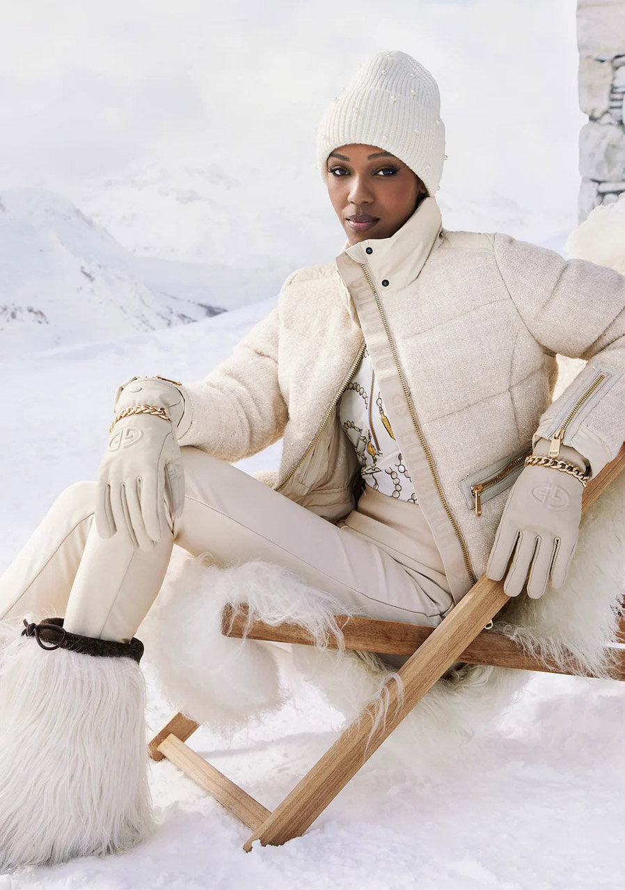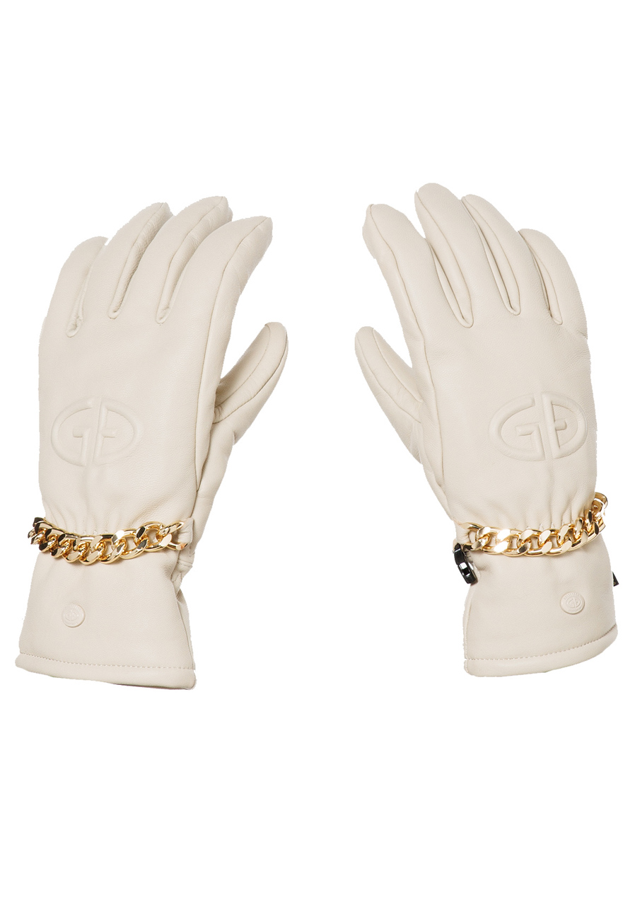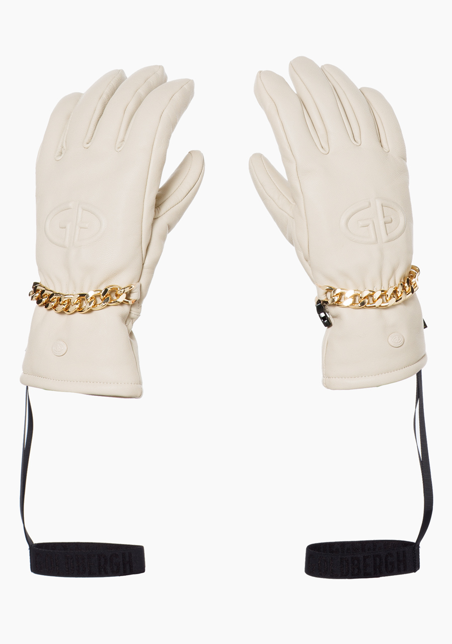 Goldbergh Kylie Gloves v odtieni Champagne sú elegantné dámske rukavice z kvalitnej kozľacej kože, ktoré zdobia luxusné detaily ako reliéfne logo značky Goldbergh a zlatá retiazka na zápästí. Sú navrhnuté na zimnú sezónu a vybavené izoláciou Primaloft, ktorá poskytuje výbornú tepelnú ochranu, a vetruodolnou podšívkou na ochranu pred nepriaznivým počasím. Elastický pásik na zápästí zaručuje bezpečné a pohodlné nosenie. Rukavice sú priedušné a vodeodolné do 5 000 mm. Praktické cestovné puzdro je súčasťou balenia. Perfektná kombinácia elegancie, funkčnosti a výkonu na bežné nosenie aj zimné športy.