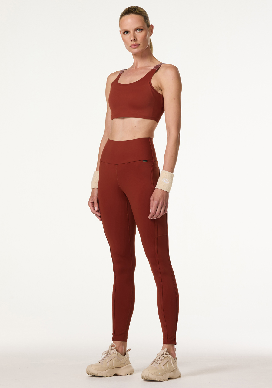 Ak hľadáte kombináciu dynamiky a elegancie, určite oceníte dámsku funkčnú športovú podprsenku Goldbergh Nanou, ktorá je ideálnym spoločníkom na intenzívny tréning alebo beh. Priliehavý strih a elastický materiál poskytujú dostatočnú podporu a prispôsobia sa vášmu telu bez obmedzenia. Všitá tvarovaná výstuž zabezpečuje strednú podporu. Nastaviteľné ramienka umožňujú dokonalé prispôsobenie podprsenky telu. Ozdoby z kryštálov na ramienkach dodávajú podprsenke elegantný a sofistikovaný vzhľad. Vrstvené pásiky na chrbte skrývajú decentné zapínanie, ktoré zaručuje maximálne pohodlie.