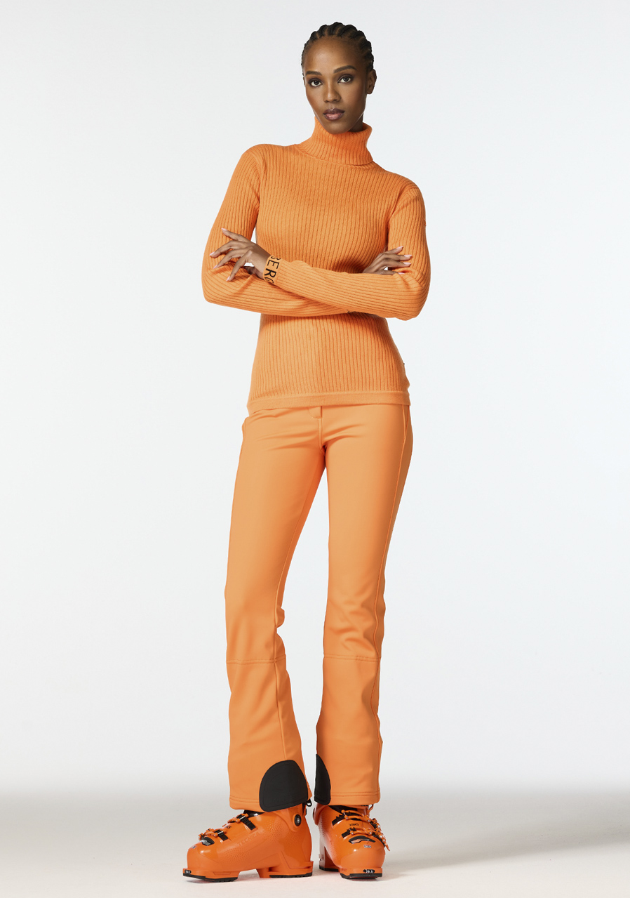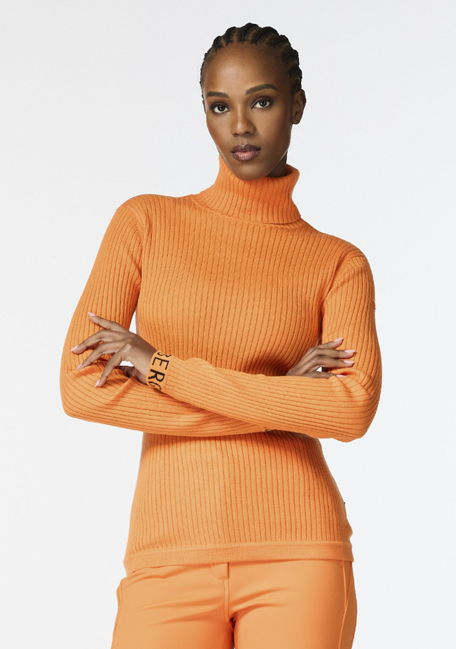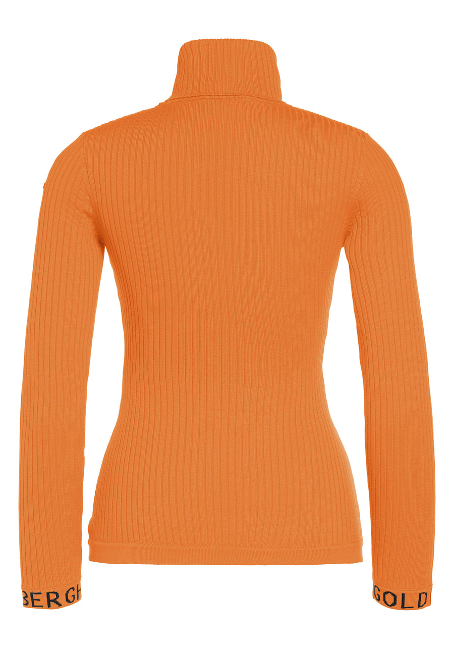 Tento slim fit rolák z jemného rebrovaného úpletu ponúka priliehavý strih, ktorý krásne zvýrazní postavu. Rolák s preloženým golierom poskytuje pohodlné teplo, zatiaľ čo kontrastný nápis Goldbergh na manžetách pridáva športový a moderný detail. Kovové a tkané značkové etikety na rukáve a boku sveter decentne zdobia a podčiarkujú jeho prémiovú kvalitu.