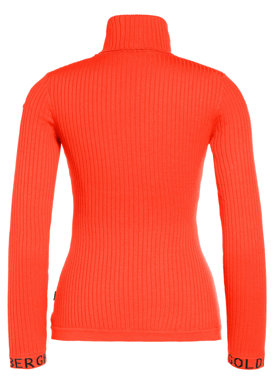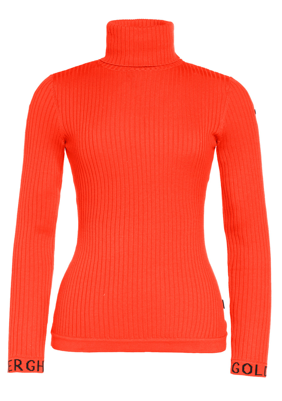 Dámsky sveter Goldbergh Mira Long Sleeve Knit Sweater v oranžovej farbe je ideálnou voľbou na voľnočasové aj športové zimné aktivity, ako je lyžovanie alebo turistika. Tento štýlový sveter kombinuje funkčnosť a eleganciu. Model je vyrobený z kvalitnej merino vlny s prímesou akrylu, čo zaručuje príjemnú pružnosť a odolnosť voči opotrebeniu. Priliehavý slim fit strih s dlhými rukávmi, priliehavým golierom a elegantným vzhľadom vďaka logu značky na lemoch rukávov z neho robí ideálny kúsok do vášho šatníka, ktorý výborne sadne a zároveň pôsobí štýlovo. Sveter je vyrobený zo rebrovaného úpletu, vďaka ktorému perfektne sedí na tele.