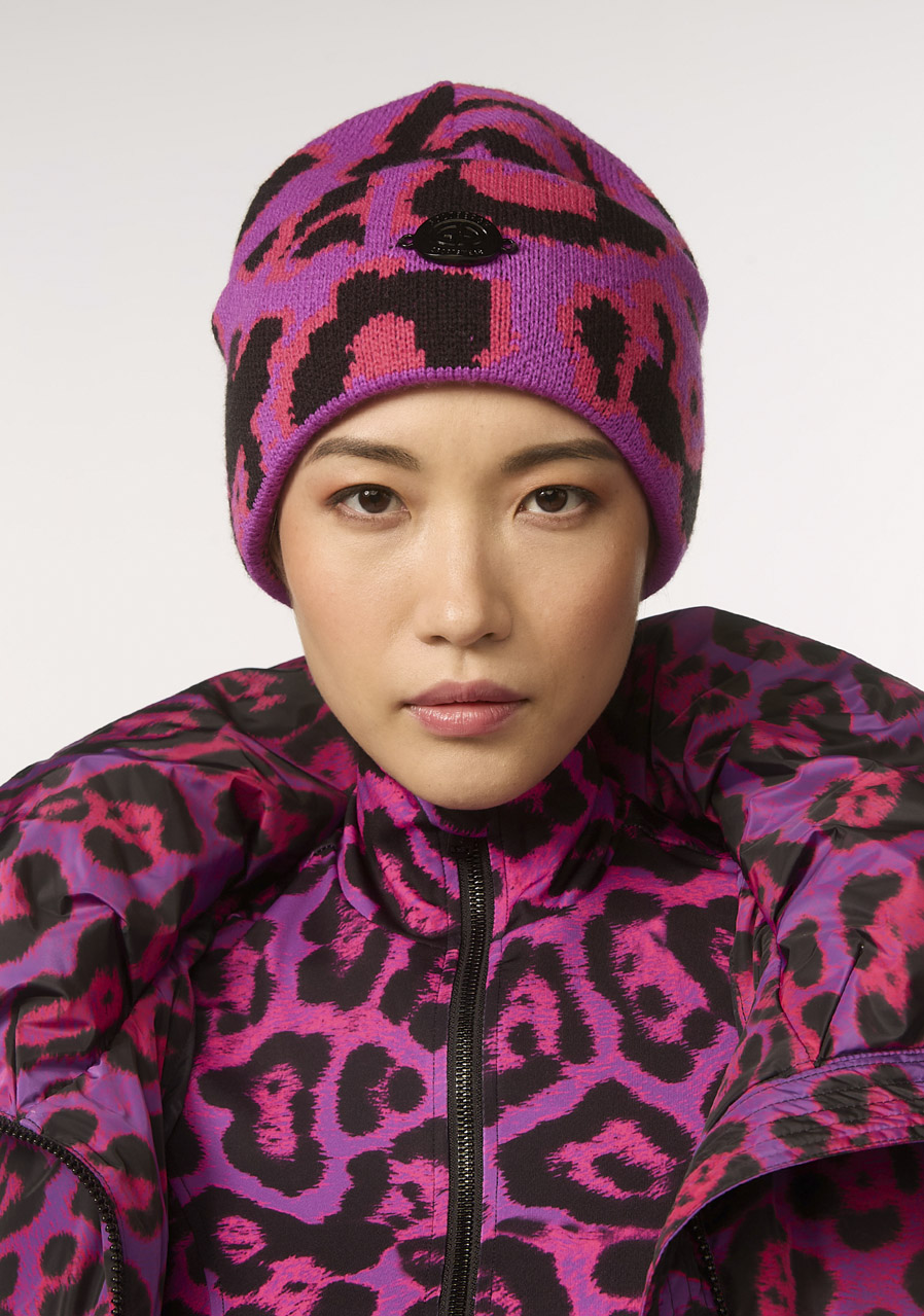 Táto odvážna pletená čiapka s výrazným jaguárovým motívom v žakárovom prevedení dodá vášmu zimnému outfitu neprehliadnuteľný vzhľad. Dvojito preložený lem zabezpečuje extra pohodlie a hrejivosť, zatiaľ čo umiestnenie značkových štítkov na prednej aj zadnej strane podčiarkuje jej prémiový charakter. Štýlová voľba pre každého, kto sa nebojí vystúpiť z davu.