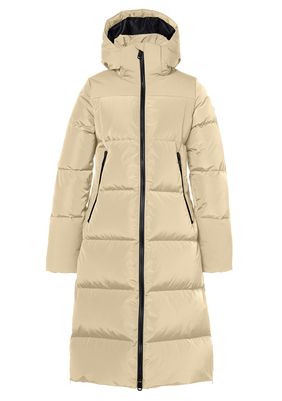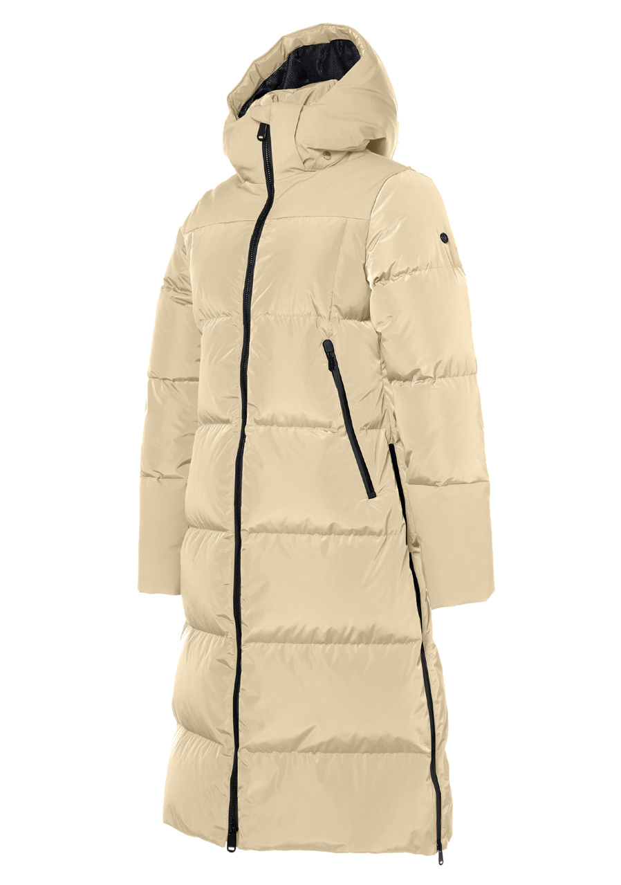 Tento dámsky zimný kabát v klasickom strihu spája funkčné spracovanie s čistým a moderným dizajnom. Je ideálnou voľbou pre aktívne zimné dni aj každodenné nosenie v meste. Výplň z husacieho peria zabezpečuje výborný tepelný komfort, zatiaľ čo zipsy v bočných švoch a rebrované manžety prispievajú k väčšej voľnosti pohybu aj ochrane pred chladom. Použité recyklované materiály a podšívka s úpravou proti zápachu podčiarkujú udržateľný charakter tohto modelu.