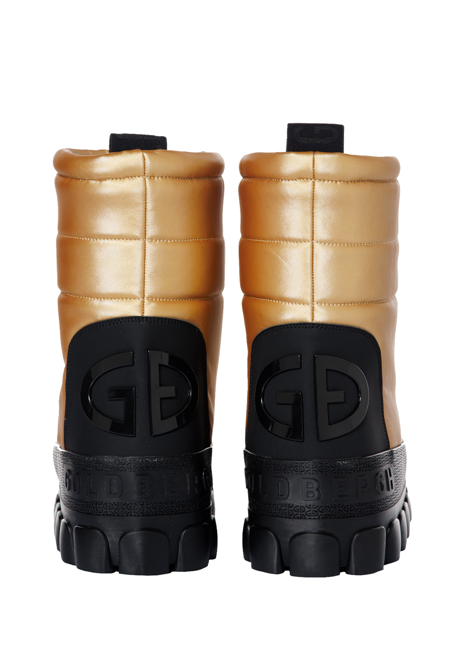 Goldbergh Snowy Snowboot Mid v zlatej farbe je štýlová a funkčná zimná obuv, ktorá vyniká moderným dizajnom a kvalitnými materiálmi. Topánky sú vybavené vodeodolnou konštrukciou, ktorá zabezpečí, že vaše nohy zostanú suché aj v náročných zimných podmienkach. Silná podrážka s protišmykovým vzorom poskytuje výbornú trakciu na snehu aj ľade, takže sa nemusíte obávať straty rovnováhy na klzkom povrchu. Vnútro topánky je zateplené, čo zaručuje pohodlie a tepelný komfort počas celého dňa aj pri nízkych teplotách. Tento model je navyše vybavený elastickou šnúrkou na stiahnutie topánky tak, aby vám perfektne sadla. Jeho jednoduchý dizajn s elegantnými detailmi sa ľahko kombinuje s rôznymi zimnými outfitmi. Tento model je ideálny na každodenné nosenie, zimné športy aj voľnočasové aktivity. Goldbergh Snowy Snowboot je perfektnou voľbou pre tých, ktorí chcú počas zimy skombinovať štýl, pohodlie a funkčnosť.