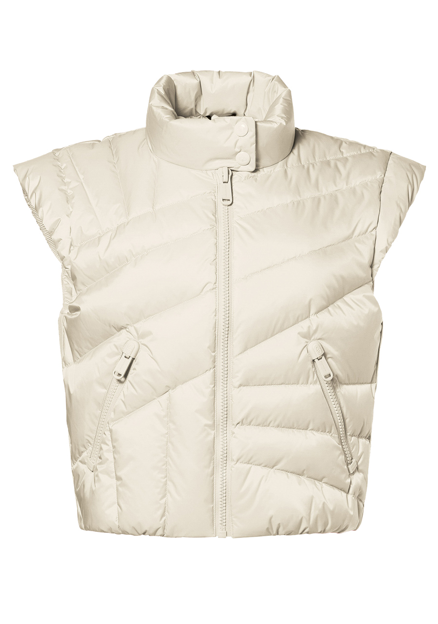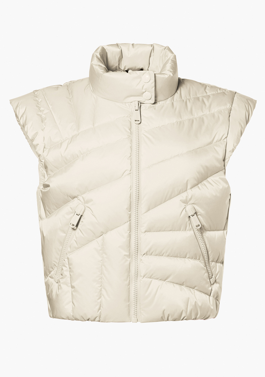 Elegantná a funkčná dámska vesta Goldbergh Victoire je skvelým kúskom na prechodné obdobie. Vždy, keď potrebujete dostatočne teplé, no zároveň pohodlné oblečenie, je vám k dispozícii prešívaná vesta z odolnej tkaniny typu taft s optimálnou úrovňou vodeodolnosti. Páperová výplň zabezpečuje ľahkosť aj izolačnú vrstvu. Geometrické a výrazné prešívanie podčiarkuje ženský štýl.