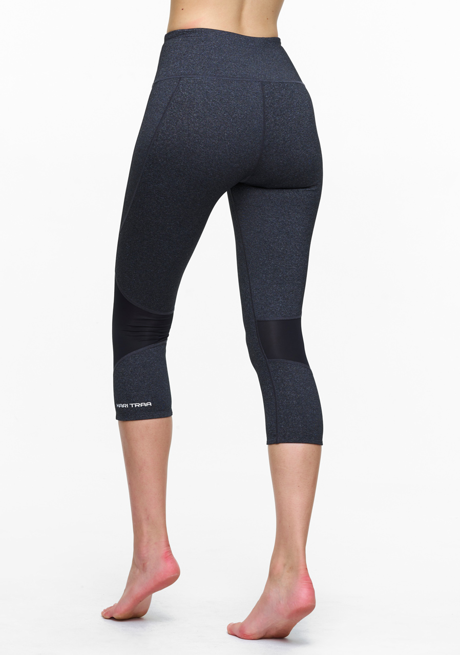 Strih: Trojštvrťová dĺžka typu capri, končiaca pod kolenami. Vysoký pás (High Waist) zabezpečuje spevnenie a komfort pri pohybe.