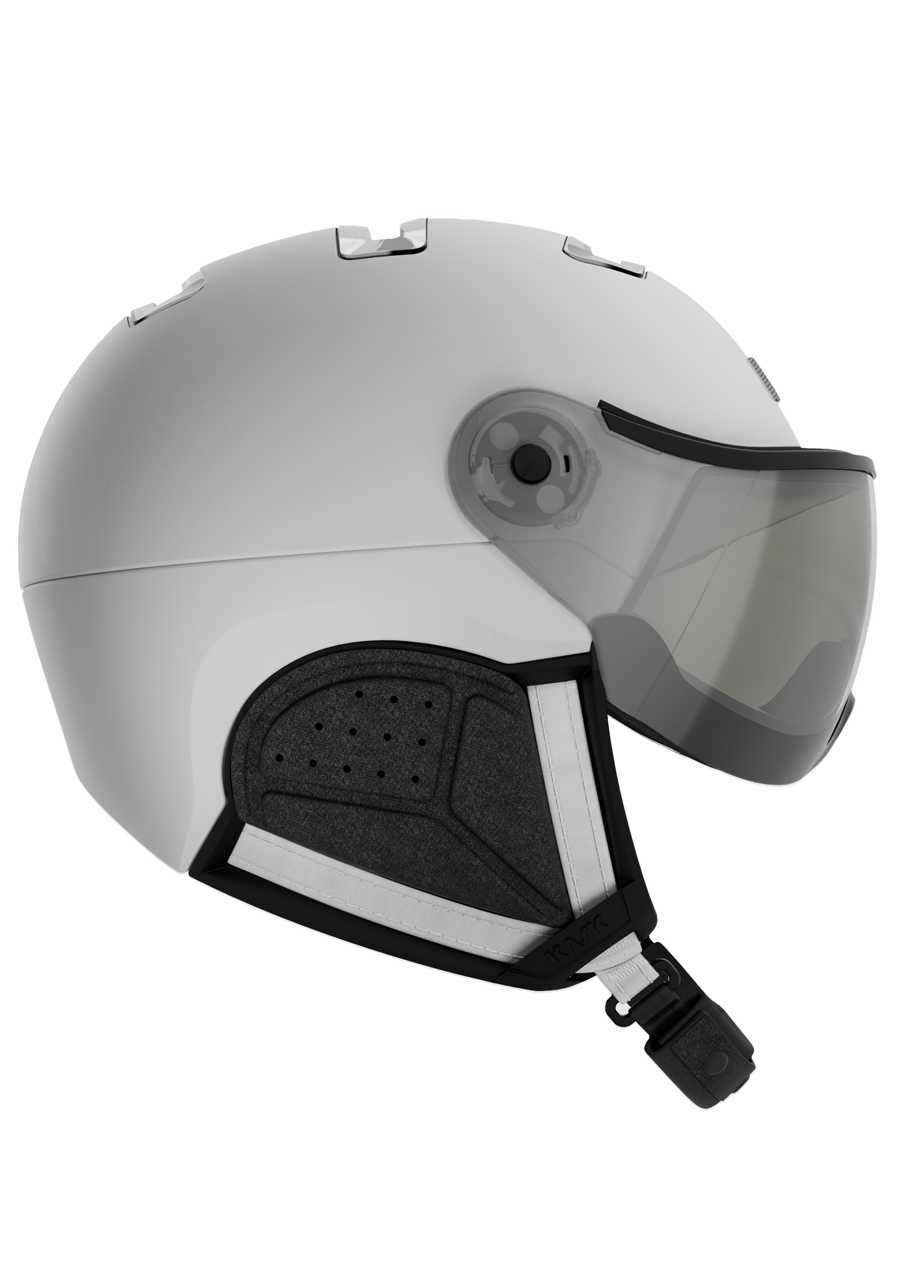 Funkcie Fototropný štít so strieborným chrómovým efektom sa automaticky zatmavuje podľa intenzity svetla a poskytuje ochranu proti UV žiareniu, vetru a snehu. Úprava proti zahmlievaniu znižuje tvorbu kondenzácie. Ventilácia umožňuje dobrý prietok vzduchu. Prilba je kompatibilná s väčšinou lyžiarskych okuliarov, ale vďaka štítu nie sú nutnosťou.
