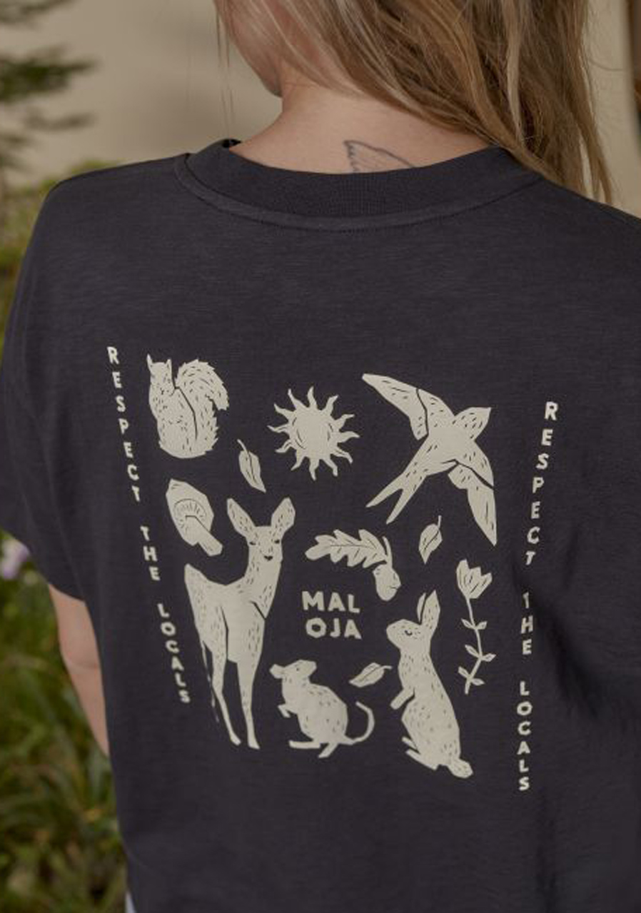 Štýlový dizajn s decentným nápisom Maloja na hrudi