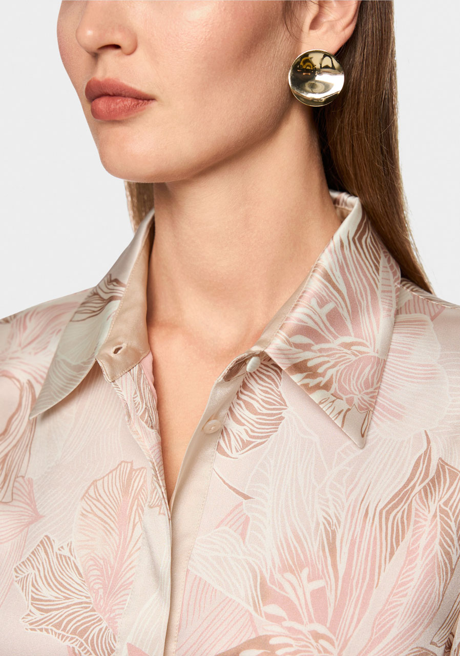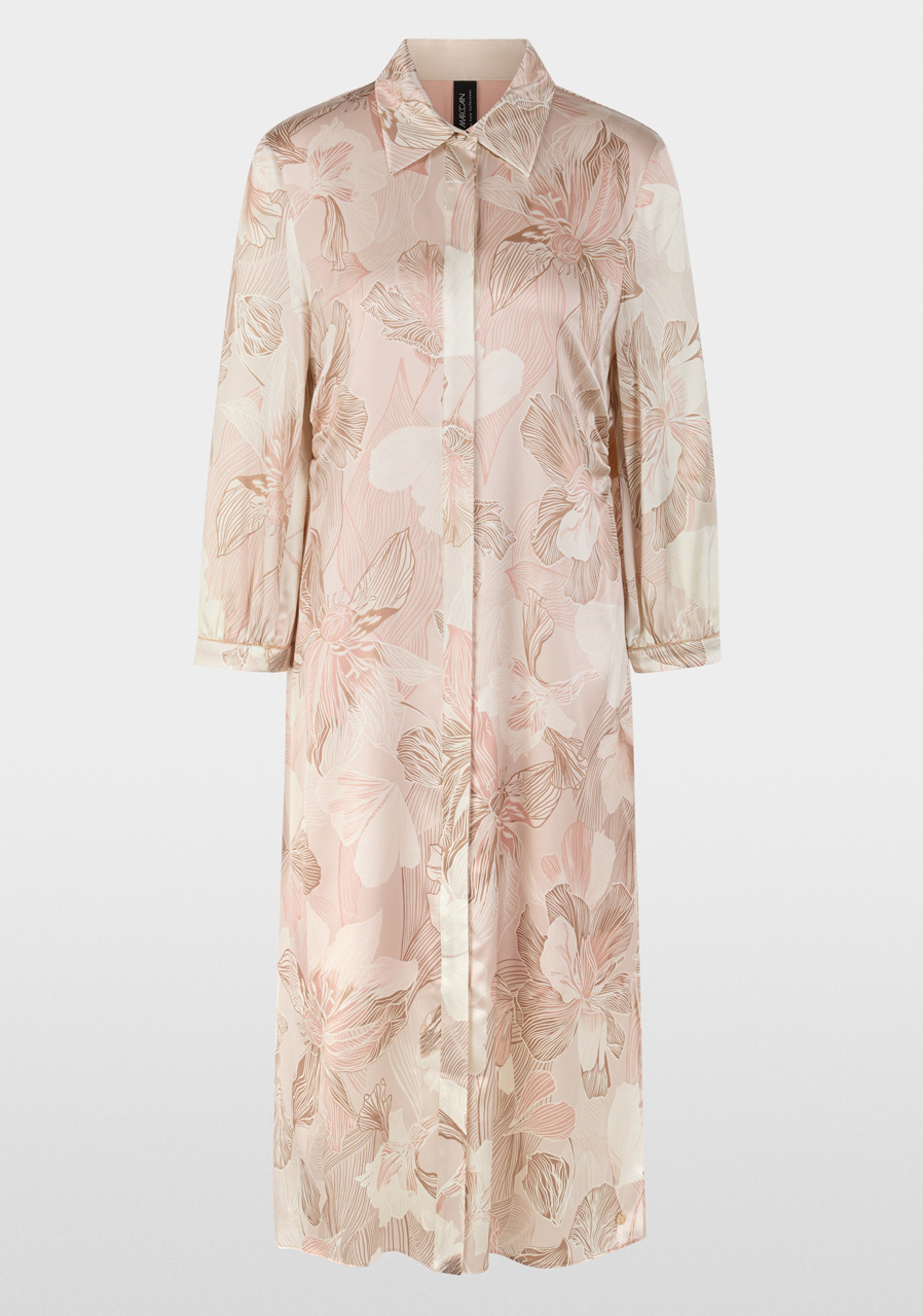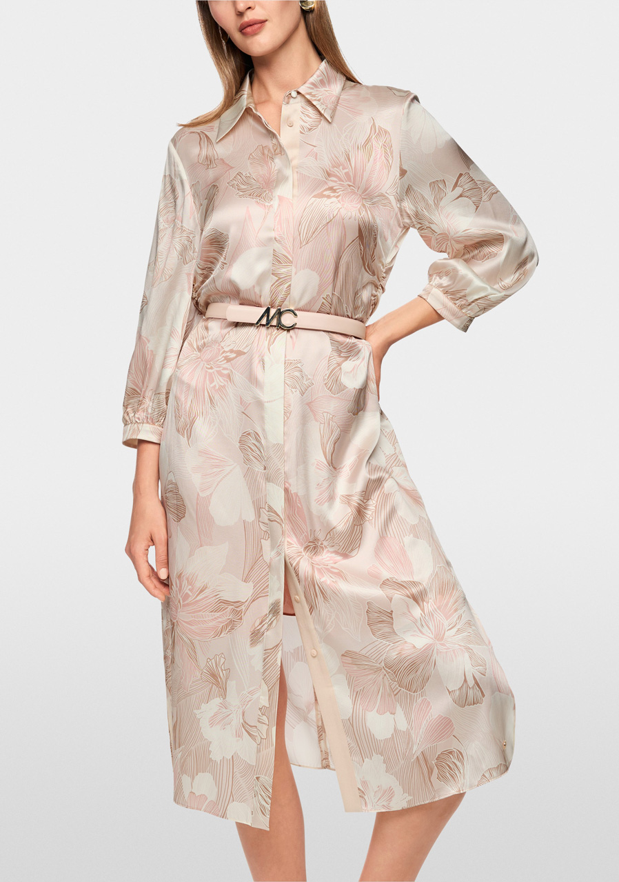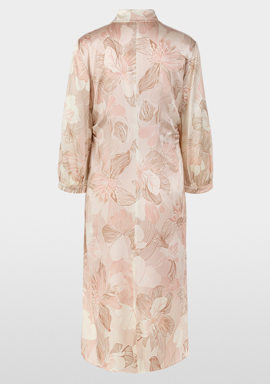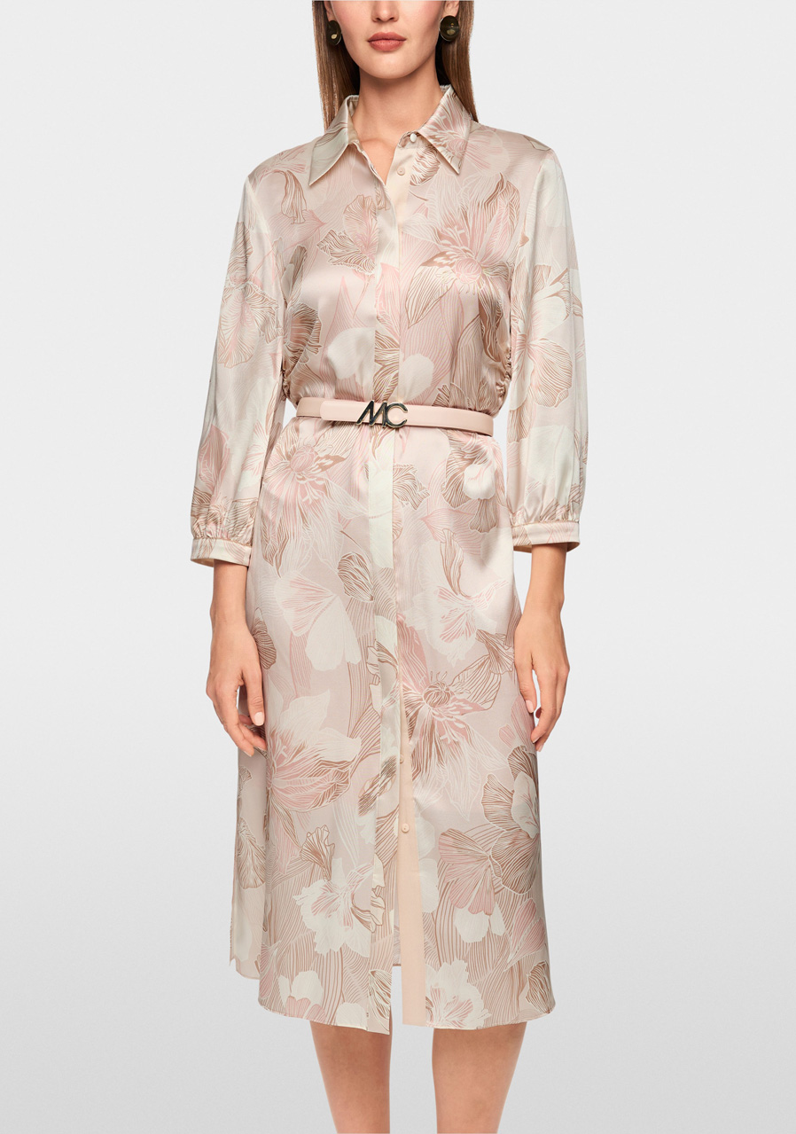 Elegantné dámske šaty Marc Cain AC 21.17 W09 v jemnej farbe peach beige ponúkajú štýlový a nadčasový kúsok vhodný na rôzne príležitosti – od pracovných dní až po voľnočasové outfity. Model je navrhnutý s 3/4 rukávmi a klasickým golierom, zapína sa na gombíky a má ľahko splývavý strih, ktorý podčiarkuje ženskú siluetu a zároveň poskytuje pohodlie po celý deň. Kvetinový vzor dodáva šatám jemnú estetiku a univerzálny charakter, ktorý možno ľahko kombinovať s doplnkami aj vrstvenými kúskami. Modelka meria 179 cm a má na sebe veľkosť N3/38.