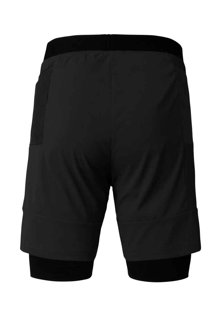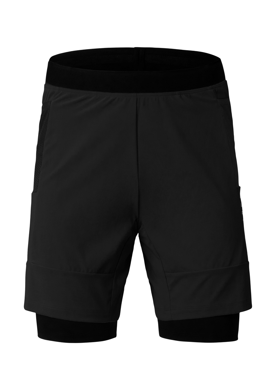 Obe vrstvy sú elastické, priedušné a rýchloschnúce, čo zabezpečuje komfort aj pri intenzívnom tréningu. Elastický pás so silikónovým prúžkom udržiava šortky na mieste bez nepríjemného zarezávania. Dve bočné sieťované vrecká ponúkajú praktický úložný priestor na drobnosti. Reflexné logo zvyšuje viditeľnosť pri slabšom osvetlení. Šortky sú vyrobené v Európe s dôrazom na udržateľnosť – bez obsahu PFC.
