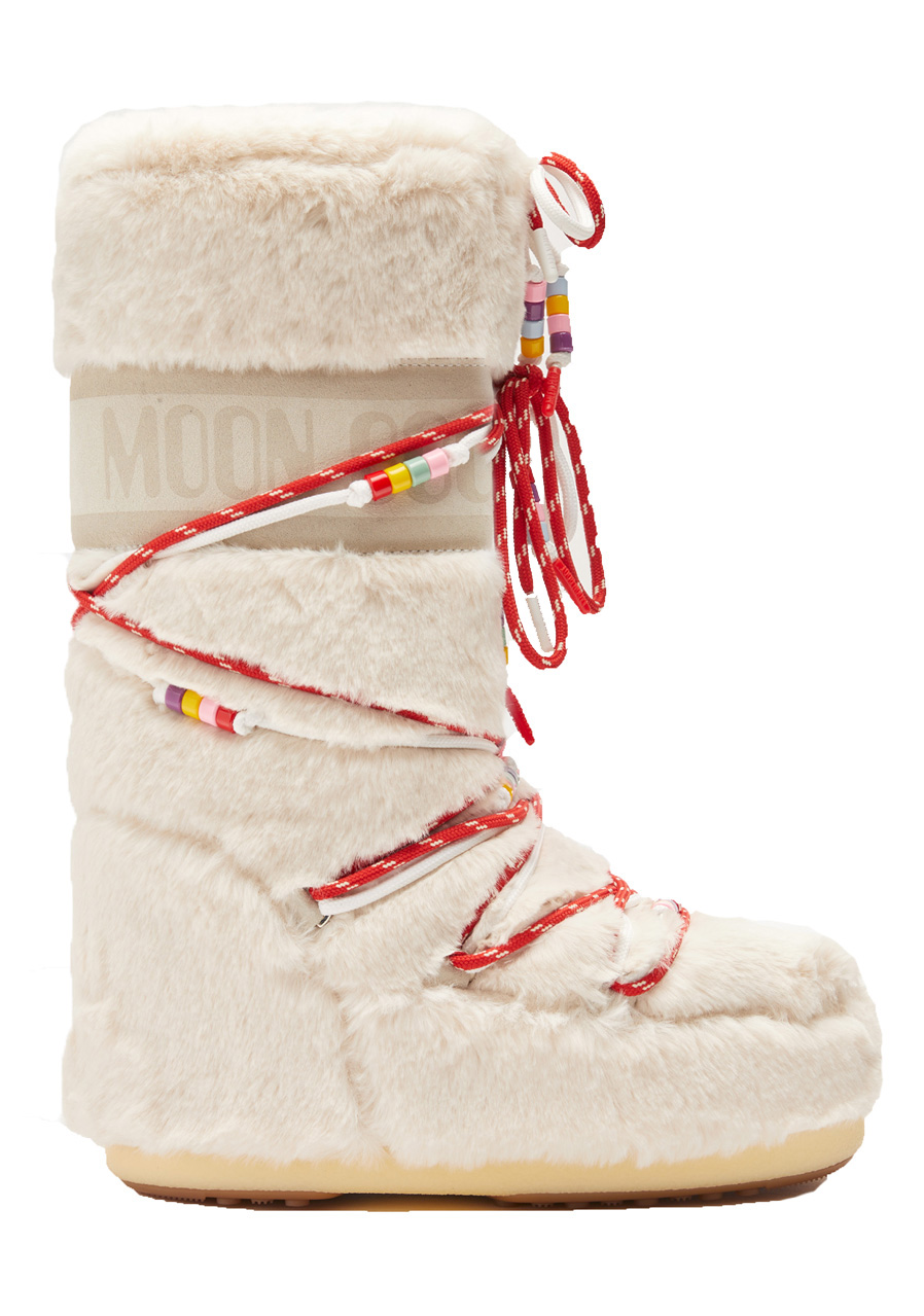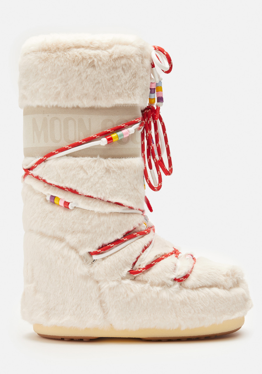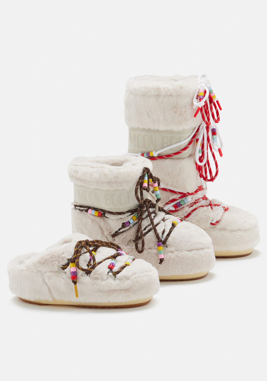 Tieto jedinečné dámske topánky Moon Boot vás okúzlia svojim futuristickým dizajnom a špičkovou technológiou, ktorá zaisťuje pohodlie a ochranu aj v tých najnáročnejších podmienkach. Vďaka ľahkej medzipodrážke, viacvrstvovej penovej podšívke a gumovej podrážke s prísavkami poskytujú skvelú izoláciu a kontrolu nad akýmkoľvek terénom. Sú 100% vodoodpudivé, ľahko sa obúvajú a ponúkajú sťahovaciu šnúrku na prispôsobenie. S elegantnými PVC detailmi a kovovými pútkami v striebornej farbe sú tieto topánky skvelou voľbou pre každú zimnú sezónu. Tieto topánky v čiernej farbe, zdobené farebnými korálkami a pokryté mäkkou umelou kožušinou, vás okúzlia nielen svojim štýlom, ale aj technológiou inšpirovanou astronautmi.