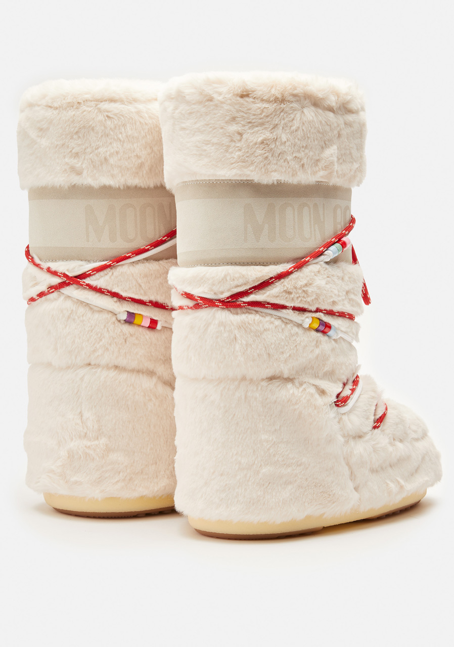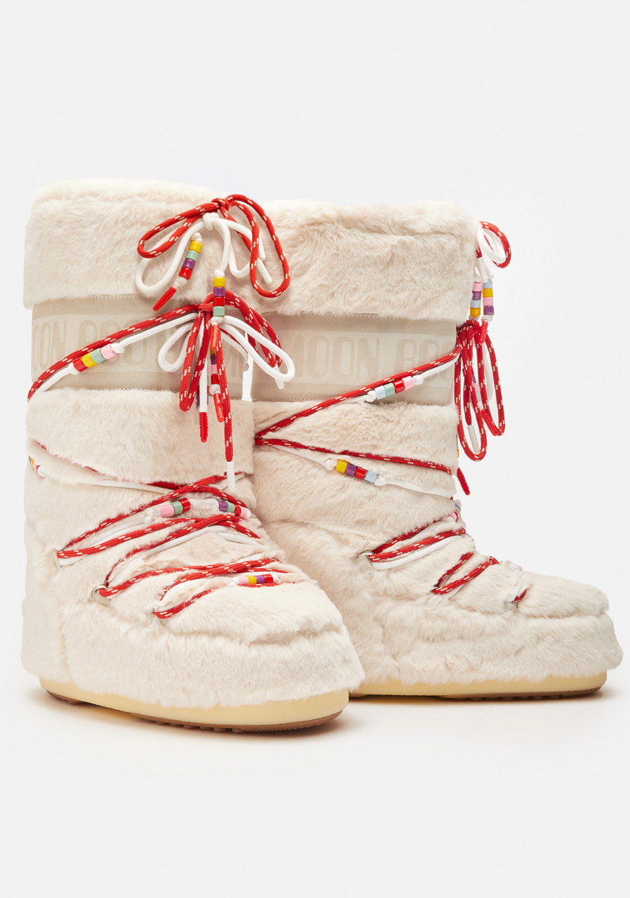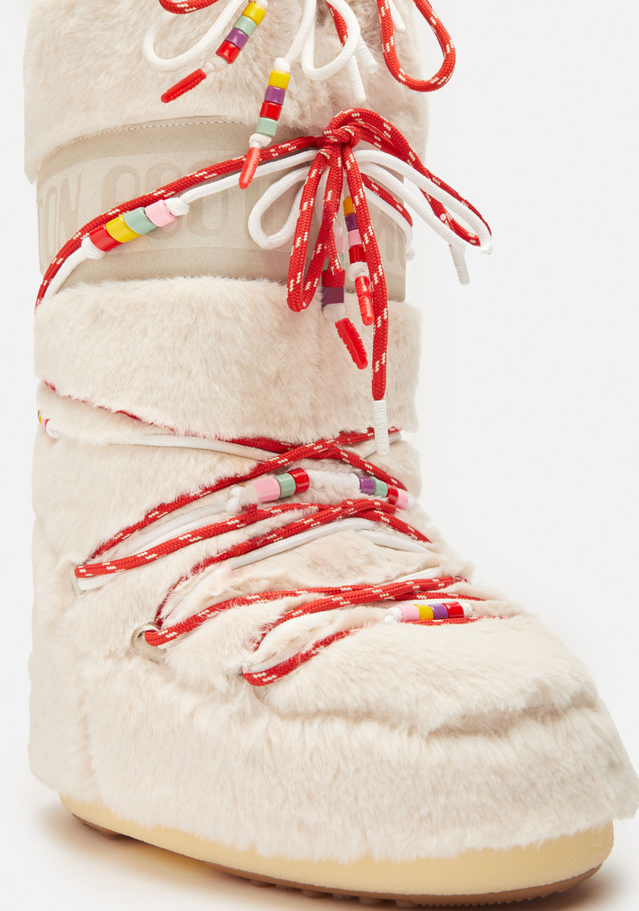 Tieto jedinečné dámske topánky Moon Boot vás okúzlia svojim futuristickým dizajnom a špičkovou technológiou, ktorá zaisťuje pohodlie a ochranu aj v tých najnáročnejších podmienkach. Vďaka ľahkej medzipodrážke, viacvrstvovej penovej podšívke a gumovej podrážke s prísavkami poskytujú skvelú izoláciu a kontrolu nad akýmkoľvek terénom. Sú 100% vodoodpudivé, ľahko sa obúvajú a ponúkajú sťahovaciu šnúrku na prispôsobenie. S elegantnými PVC detailmi a kovovými pútkami v striebornej farbe sú tieto topánky skvelou voľbou pre každú zimnú sezónu. Tieto topánky v čiernej farbe, zdobené farebnými korálkami a pokryté mäkkou umelou kožušinou, vás okúzlia nielen svojim štýlom, ale aj technológiou inšpirovanou astronautmi.